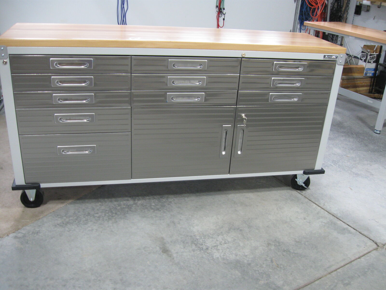 New Seville Classics UltraHD 11 Drawer Rolling Granite Workbench, 77" x 20" x 37.5"