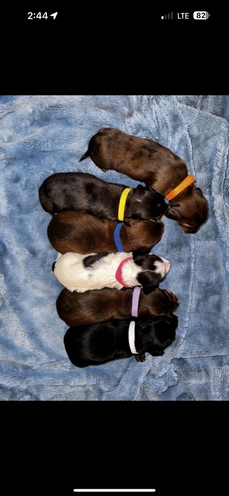 We have 6 long hair miniature dacshunds puppies born on December 31st. We have 5 girls and 1 boy. They will be 8 weeks and ready for their forever home on February 25, 2026.