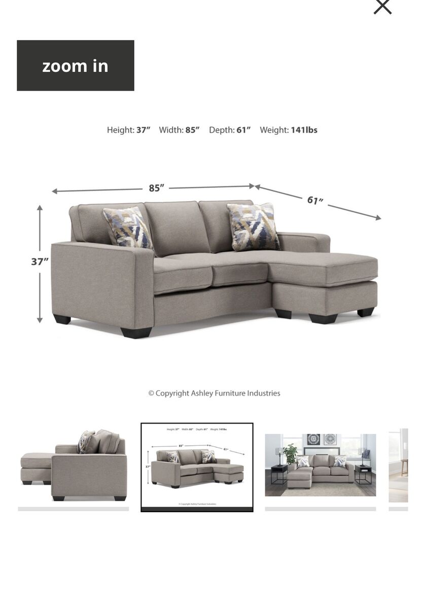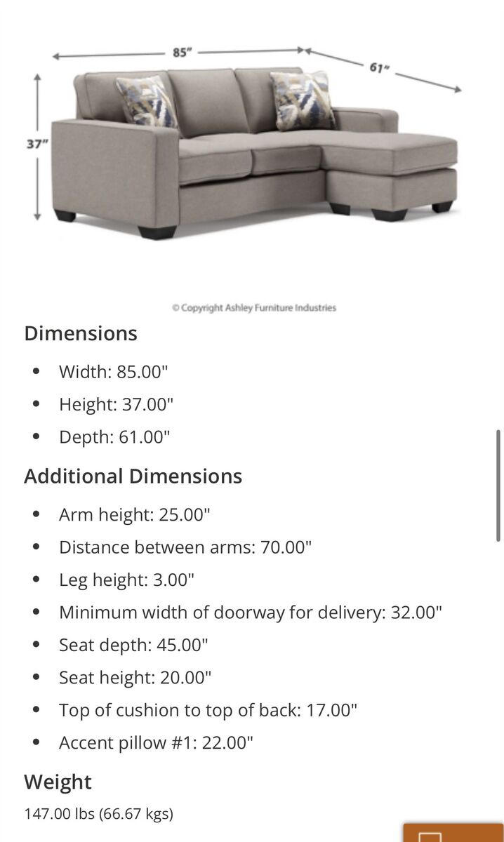 Nice cozy sofa bought at Ashley store! Dimensions on pictures