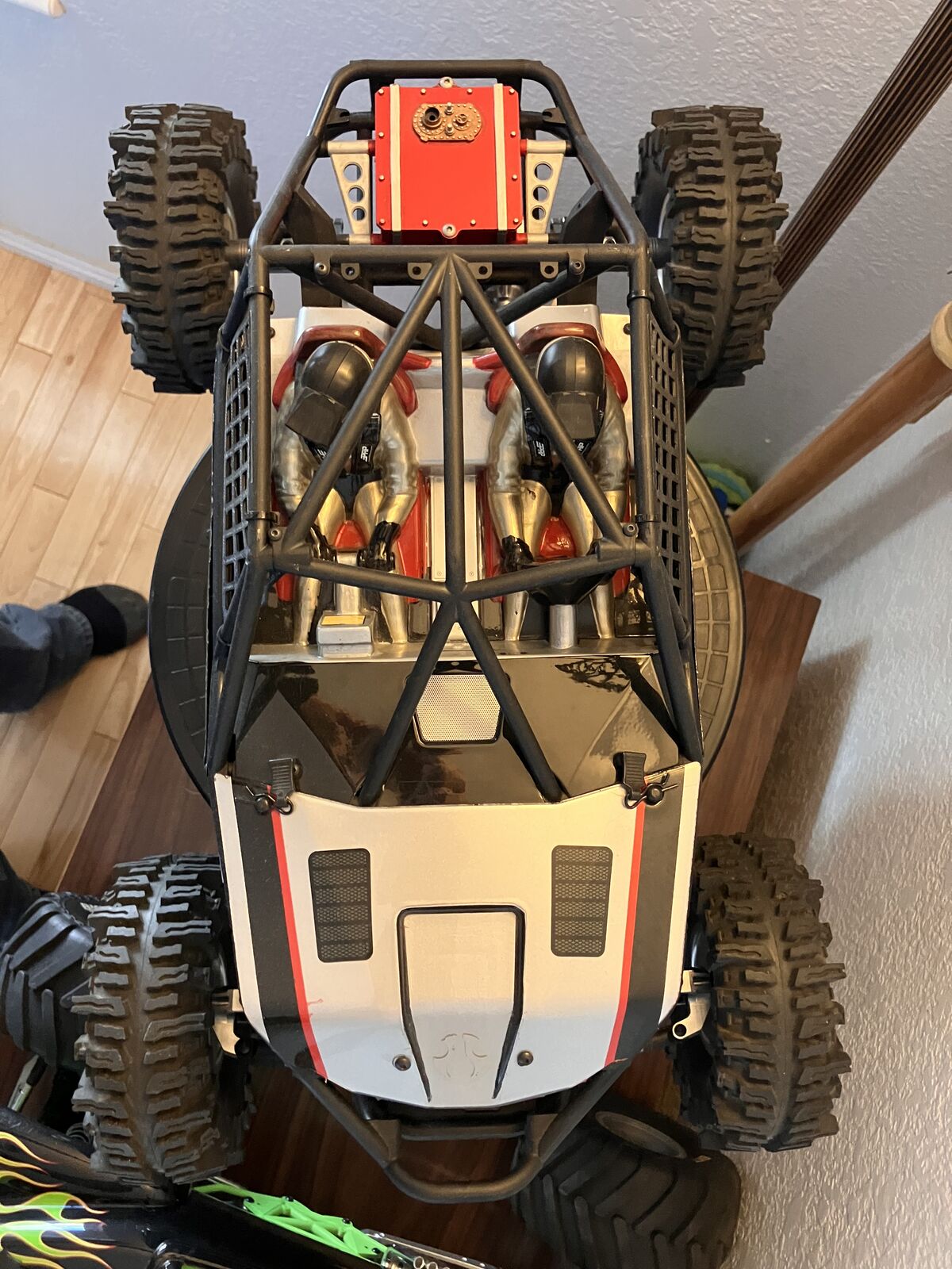 All new unused kit build with tons of upgrades including the alloy motor mount. Includes the factory axles set as well. 6 channel dumbo radio/reciever included. Just needs motor and esc to be RTR
