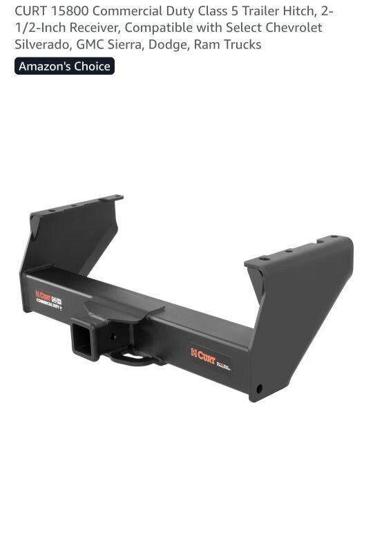 VenmoNew CURT 15800 is a heavy-duty, Class 5 commercial trailer hitch designed for specific years of large Chevrolet Silverado, GMC Sierra, Dodge Ram, and Ram 3500, 4500, & 5500 cab-and-chassis trucks, featuring a 2.5-inch receiver, 20,000 lbs GTW/2,700 lbs TW capacity, and often a no-drill, bolt-on installation for heavy towing needs. It's built for large trailers like equipment haulers and livestock trailers, offering high strength and compatibility with weight distribution systems.