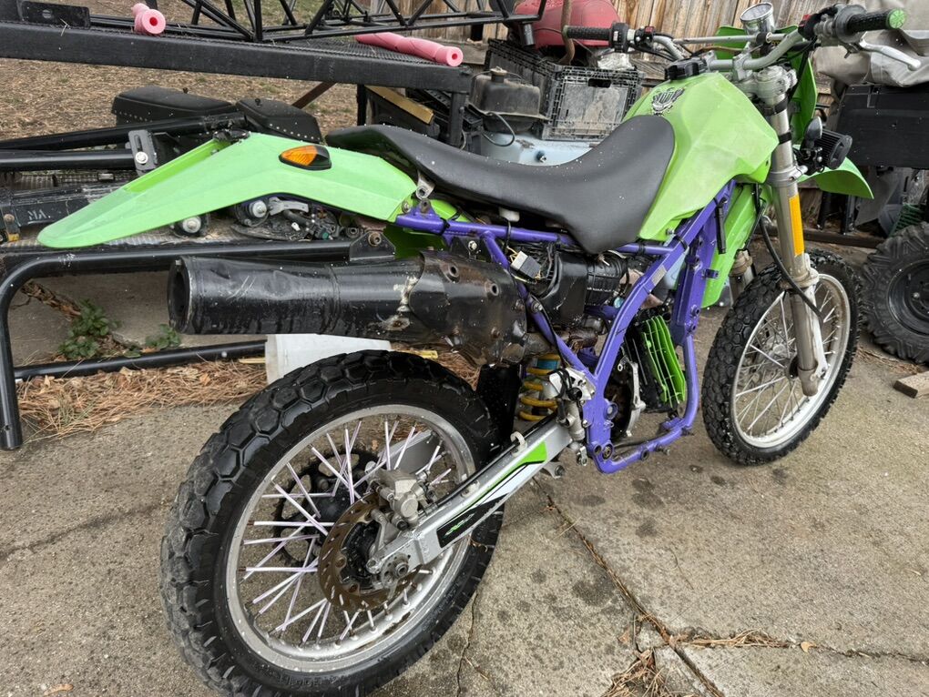 Well here’s the next. What I have here is a 90’s Kawasaki klx650 factory street legal enduro. This unit is currently engine out and in need some of a case replacement due to rock impact. Have the new case and gasket set already but no work done. This is perfect for a bike mechanic or ambitious handy person? The bike was runner prior to damage but will need entire engine contents moved/ built up in new case. Overall the chassis is clean and solid, plastics faded some but not cracked. Basically we have a project that needs good amount of work but not dollars. If it’s up your alley feel free to ask any questions, thanks!
