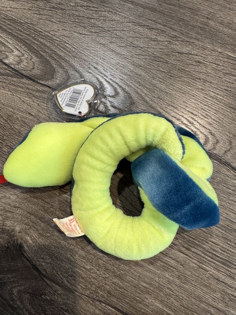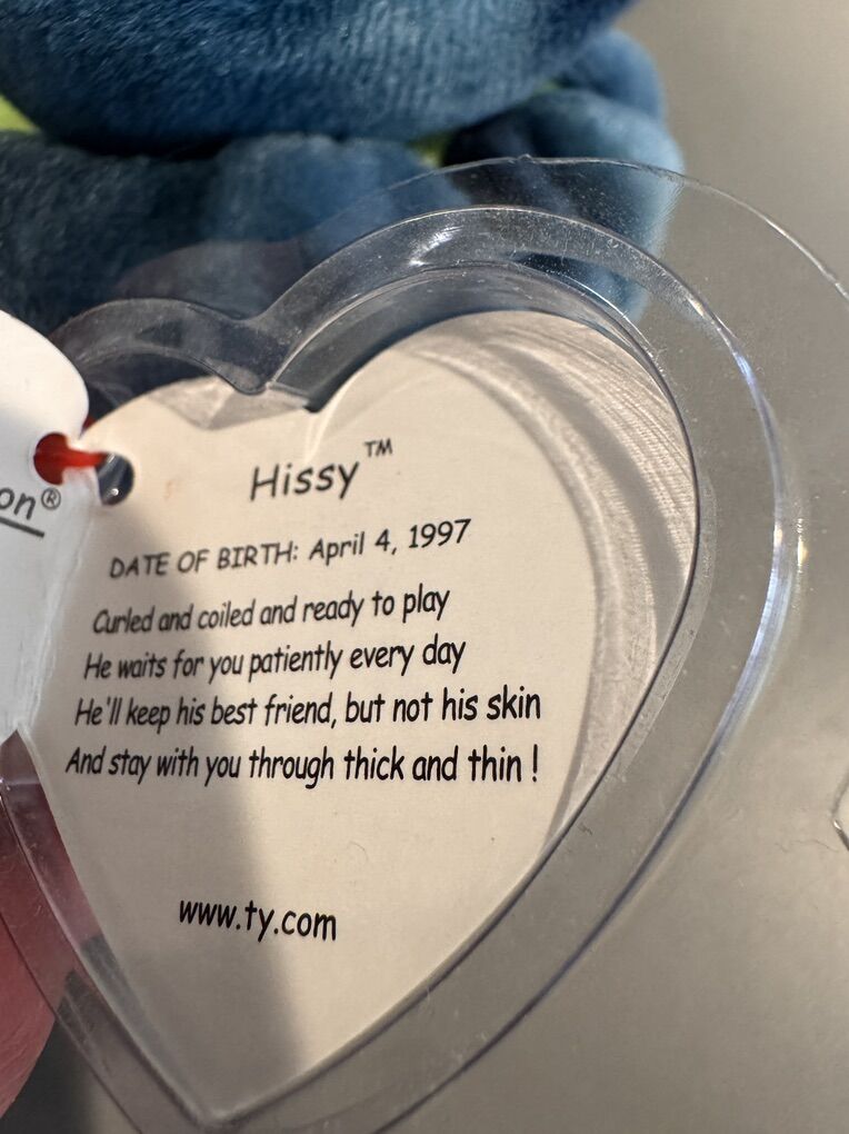PayPalExcellent condition with tag protector. From 1997 this Hissy is one of the tag error ones with an extra space after P in P.E. Pellets. Wrong address and an extra space after thin! Smoke free home.