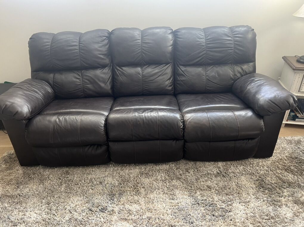 VenmoTwo dark brown leather couches. Each 88 inches long. Both have two recliners.