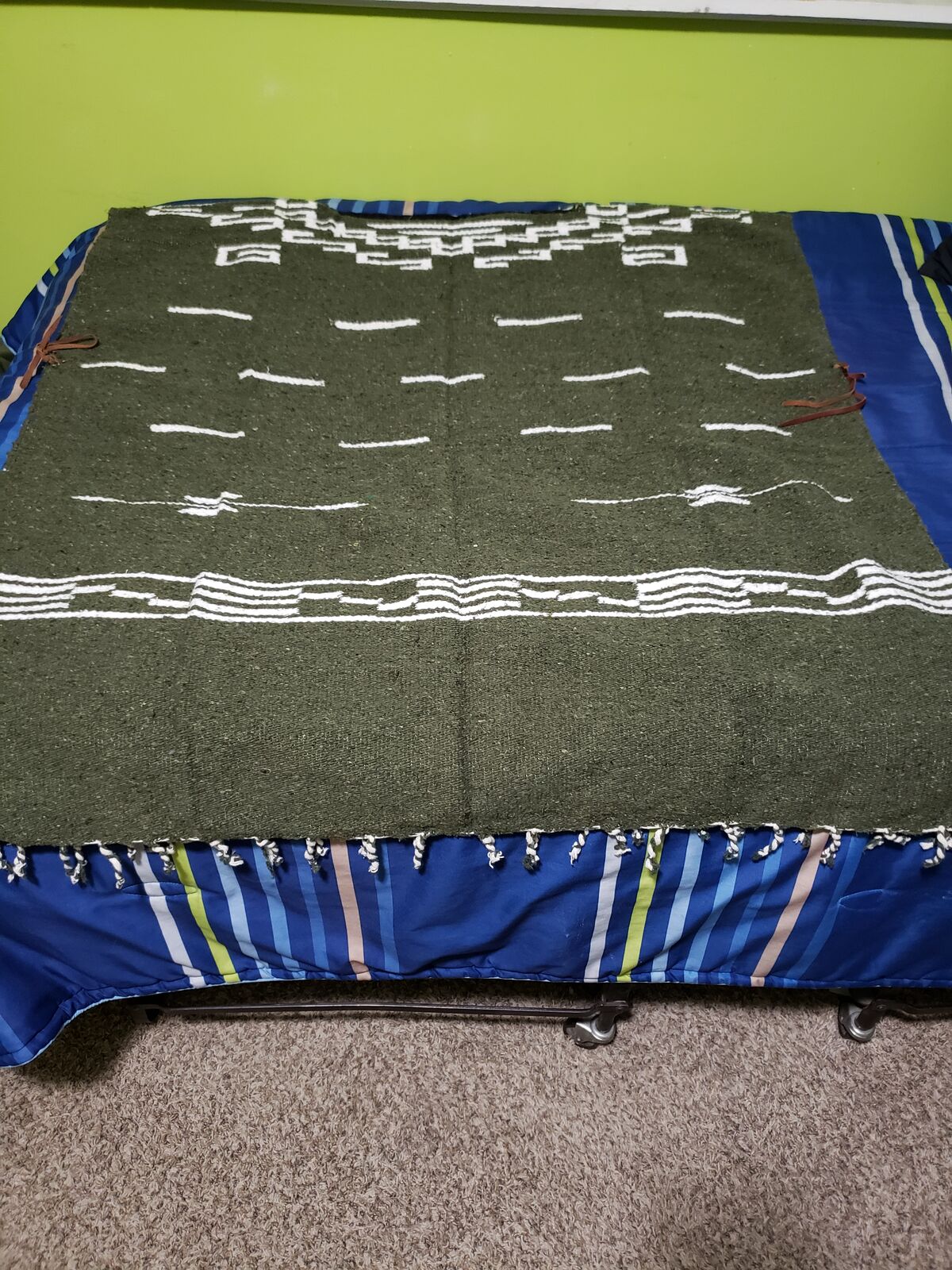 Western Poncho Clint Eastwood (Actual Movie Print & Tassles) like Worn in The Good, Bad, Ugly in perfect condition. XL Original owner. Very Warm, 80% Wool, not sure of the other 20%. Reinforced collar and leather side ties. I'm 6' 2" and its big. Paid over $140.00 for it a few year back. 1st $60.00 takes it to the Rodeo. Call 385 542-8937