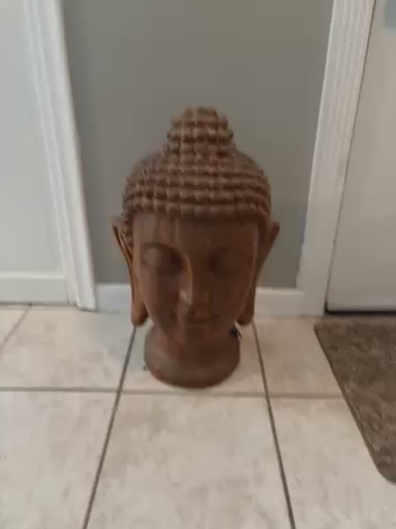 VenmoThis Buddha head is solid wood and measures 25 inches high by 15 1/2 across. 13 inches deep. Solid wood.