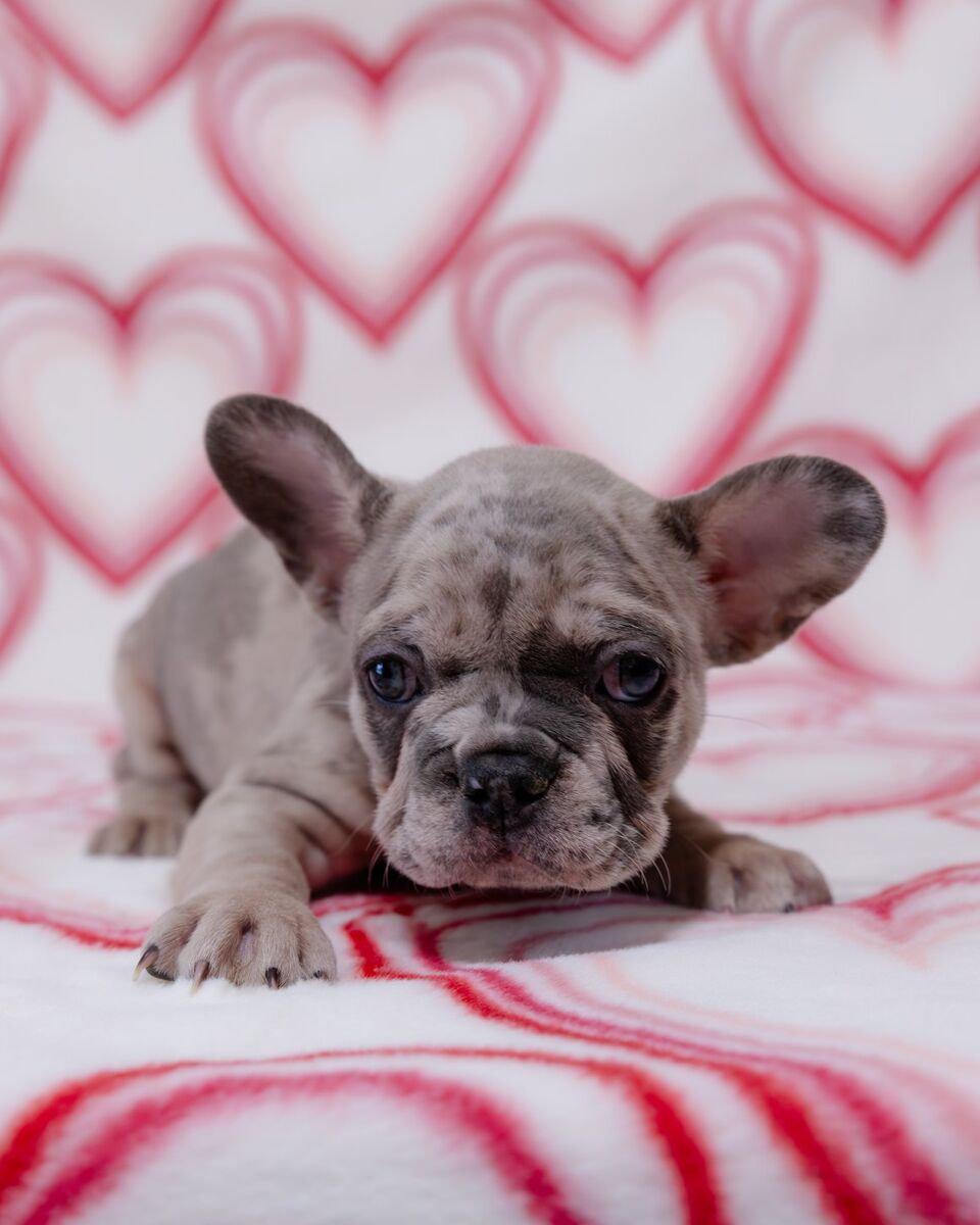 AKC French Bulldog Puppies – Ready for Their Furever Homes! 8 Weeks Old! There are 3 Males Available Blue, Orange and Purple collars! These absolutely adorable AKC-registered French Bulldog puppies are looking for loving families! Born and raised in a caring home, they've been socialized from day one with a gentle Great Dane and a playful Chihuahua, so they're already comfortable around other dogs of all sizes. They're super sweet, cuddly little babies who love attention and are full of personality. Each pup has been: Well taken care of with lots of love Dewormed Received their first set of shots Had dewclaws removed Mom and Dad are stunning examples of the breed (pics included for reference) – healthy, beautiful, and full of charm! The two gorgeous female merles (Green, Yellow and Pink Collars) are already spoken for ️ – the photos just show the amazing colors and cuteness in this litter! Priced at $3000 each – serious inquiries only. Call or text now for more info, current availability, and to meet these sweethearts before they're gone! They won't stay available long – don't miss out on adding one of these precious babies to your family!