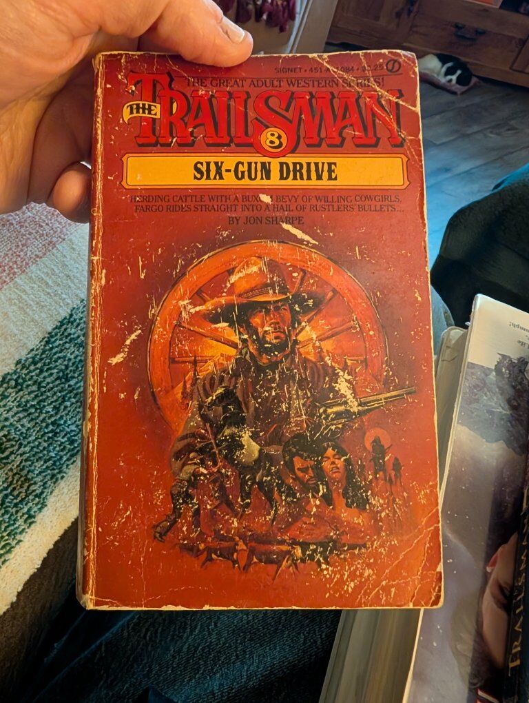 PayPalThe "Trailsman 8 Six Gun Drive" paperback book is a collectible item that is likely to appeal to fans of Western literature and collectors of rare and antiquarian books. This particular title likely features a thrilling story set in the American West, featuring a protagonist who is a skilled marksman and adventurer. The format of a paperback book adds to its convenience and portability, making it a great addition to any bookshelf or collection. 5 dollars or best offer. Will ship world wide.
