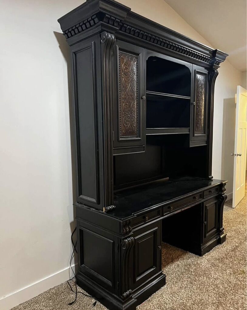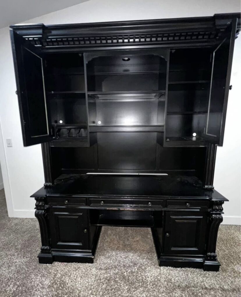 ApplePayThis is a beautiful solid wood computer desk credenza with hutch. $450 OBO. Here is the description from the manufacturer website: https://colemanfurniture.com/telluride-black-computer-credenza-with-hutch.htm