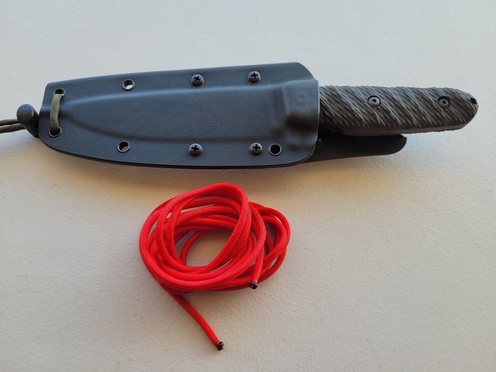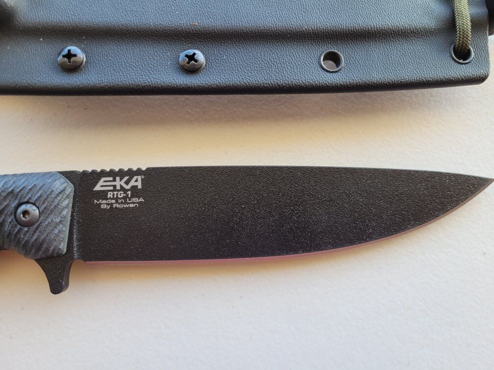 Venmo1095 steel blade. Knife comes with the sheath and as well black micarta scales from Carrol's Custom Knife Scales.