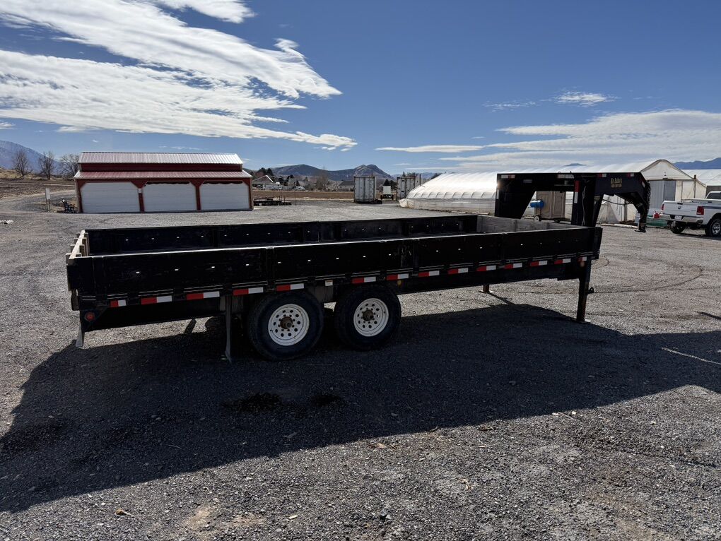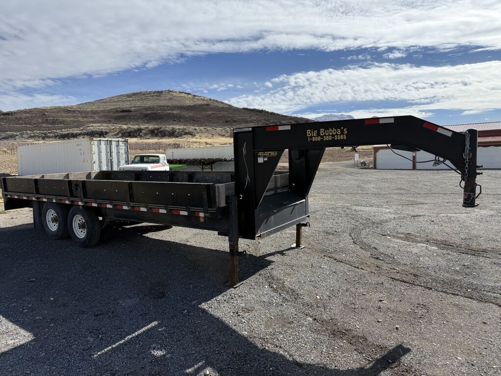 Zelle15,000 GVWR 20’ long. This is a used big Bubba’s gooseneck trailer that is in really good shape. It’s been well taken care of and maintained. It comes with pull out ramps. All of the lights are working properly. The decks in great shape also comes with a large toolbox. All of the tires are like new and they are 12 ply tires. It has custom side rails that can be removed. They slide into the stake pockets.