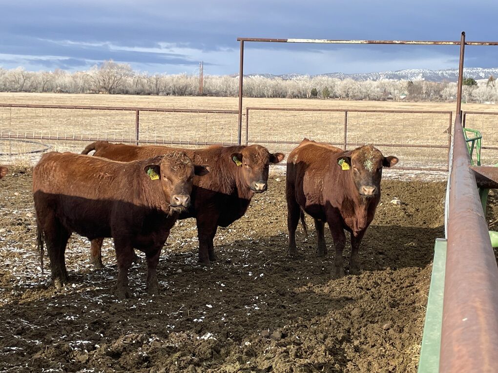 Commercial red angus bulls. High altitude mountain bulls. Tested and ready to go. Call or text for more info. 1 Hereford available also.