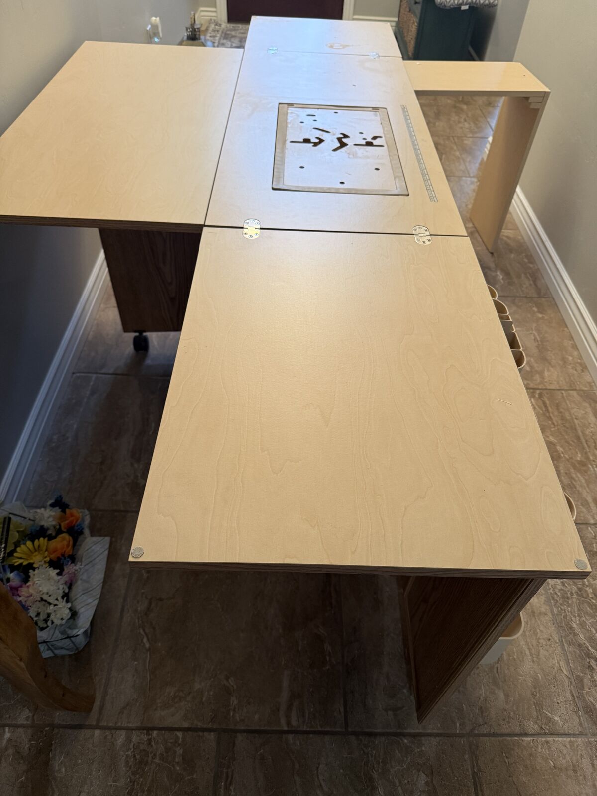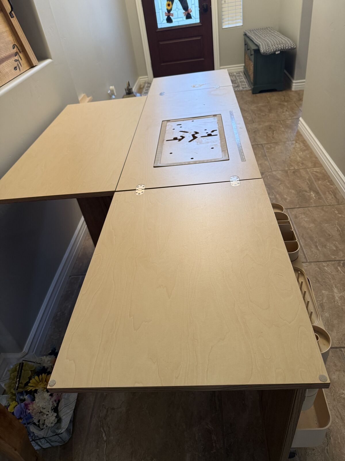 CashAppGently used but in like new condition. 3 position hydraulic lift. Lift opening accommadates most sewing machines. Has locking casters for stability and mobility. Inside pullout drawer for serger storage. Cabinet has lock w/ key. Closed cabinet dementions are 24" l x 20" W x 30 1/2" H. This is definately a great deal for any person who loves to sew.
