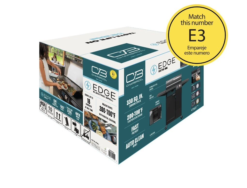 New Charbroil Electric Grill, Edge 330 Square Inch Grill with Cabinet and Side Shelves, Black. New in the box!