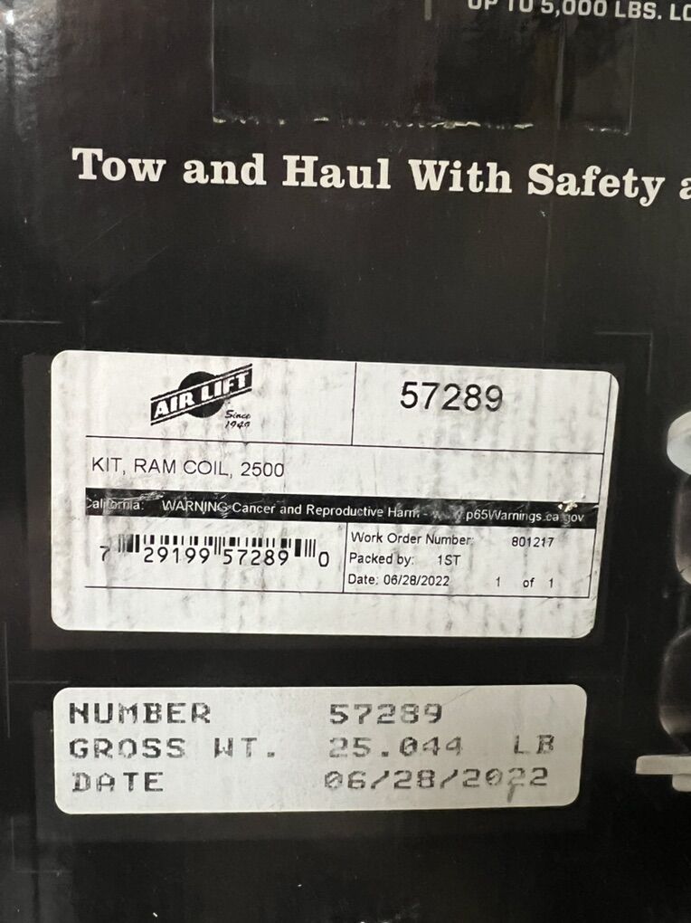 VenmoAir Bags load lifter 5000 Ram 2500. NIB