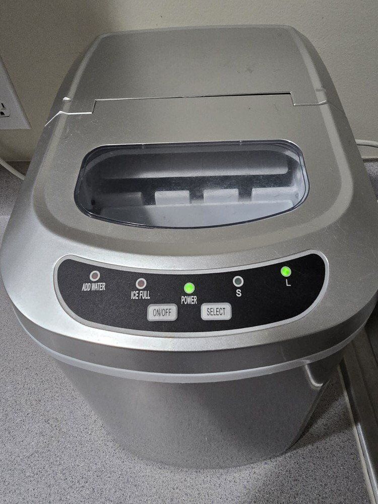 CashAppSmall counter top ice maker. It's great for camping, for regular everyday use, or for a party! It makes ice quickly and if you don't use the ice right away, the water can be used again when ready. Pick up only. This is the kind of ice I actually appreciate.