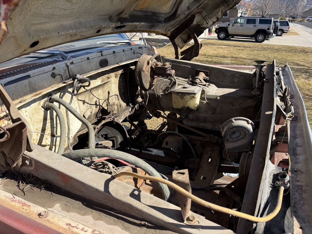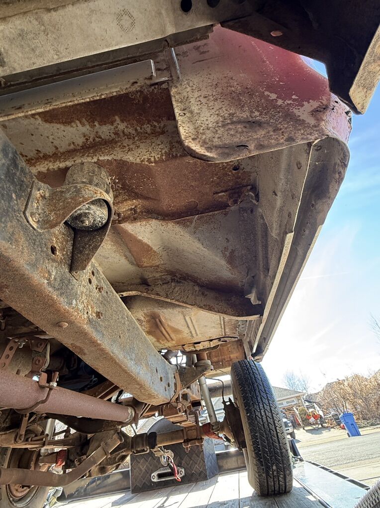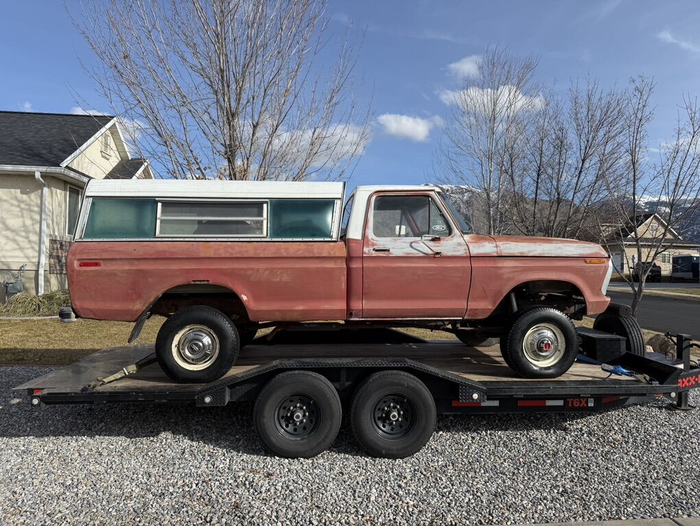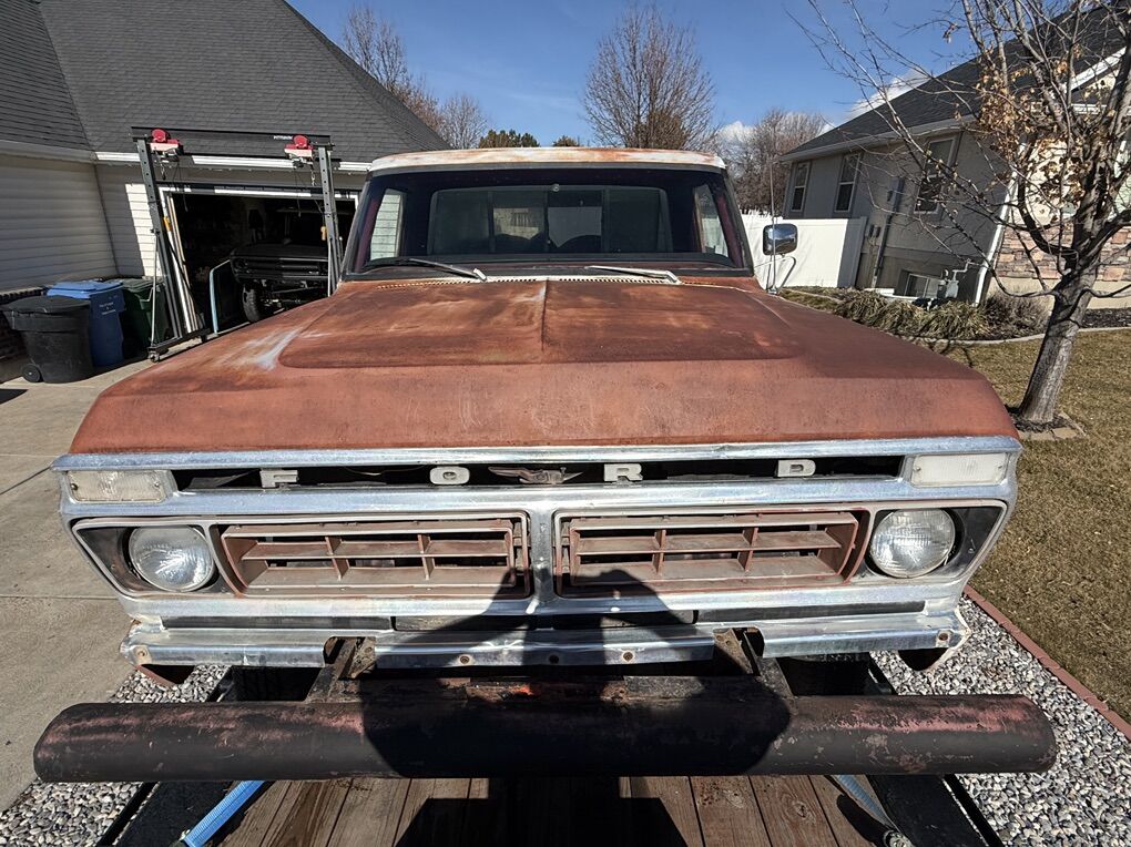 A very clean and dry 1973 Ford 3/4 ton F250 4x4. Only missing the motor, 4wd transmission and transfer case are there. Extremely solid project, very little rust in the rear wheel wells, can corner, outer drivers floor edge and inner rocker. Includes the shell and the factory hub caps.