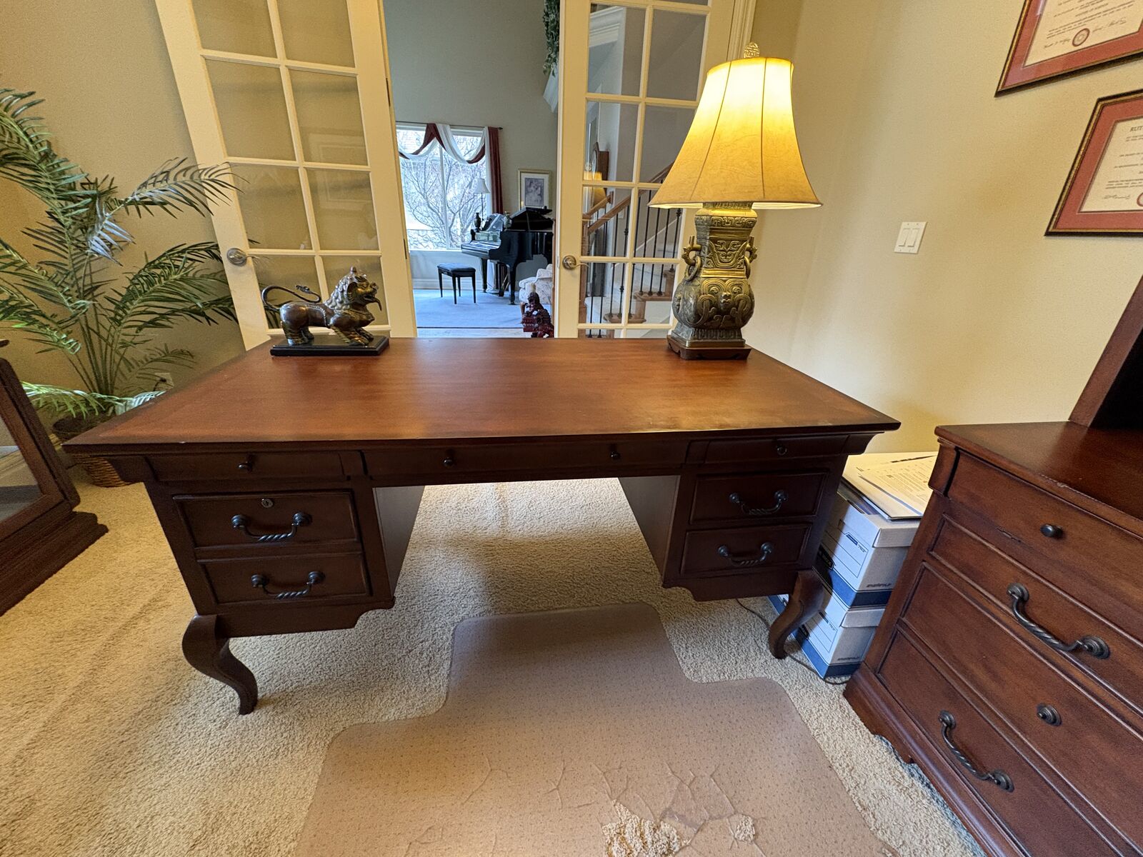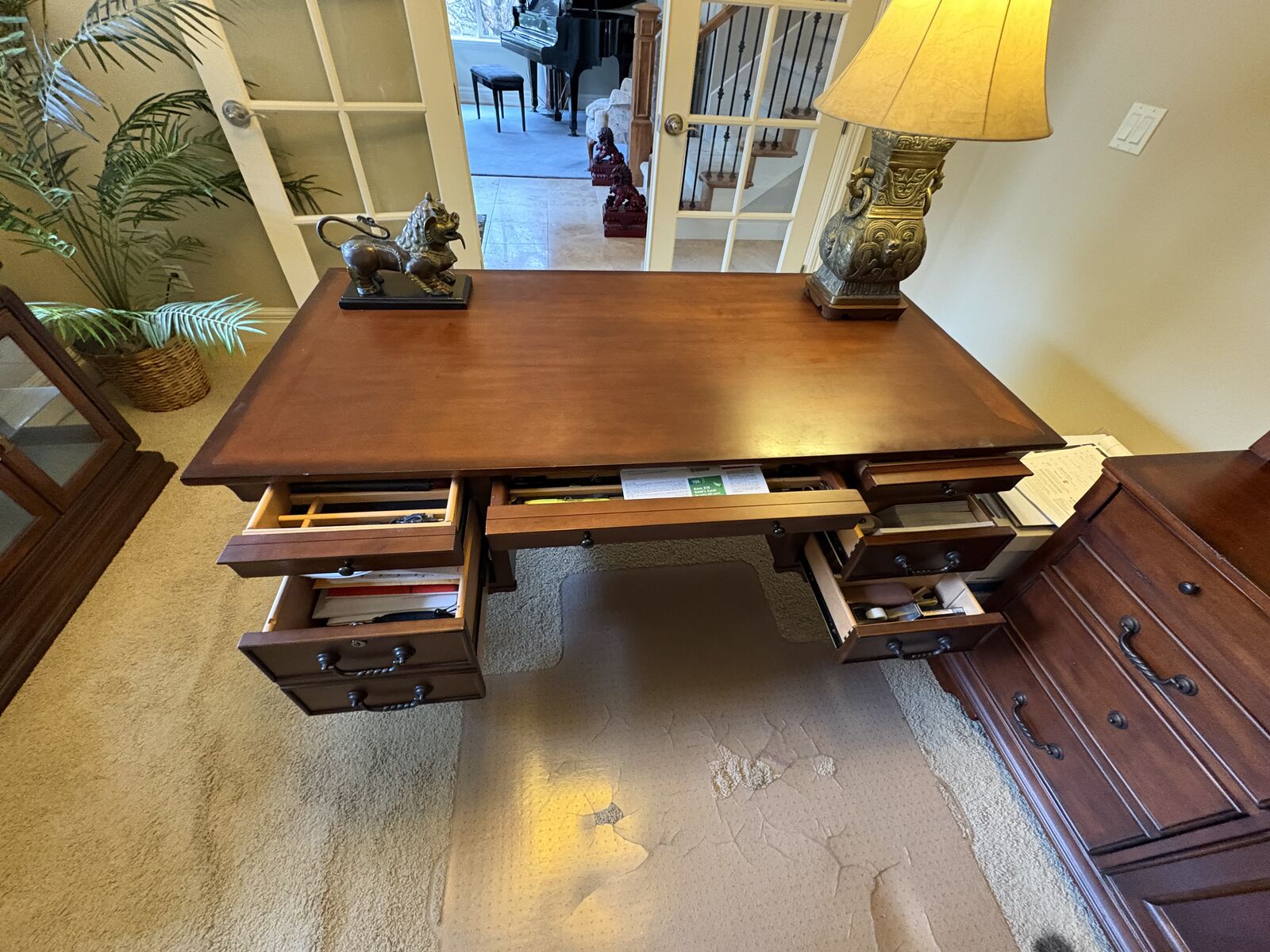 VenmoDesk measures 61" x 31" deep x 30" tall. Look through photos more info on drawers. Come with keys. Great condition. In Draper by the Draper Temple. $500 cash/venmo