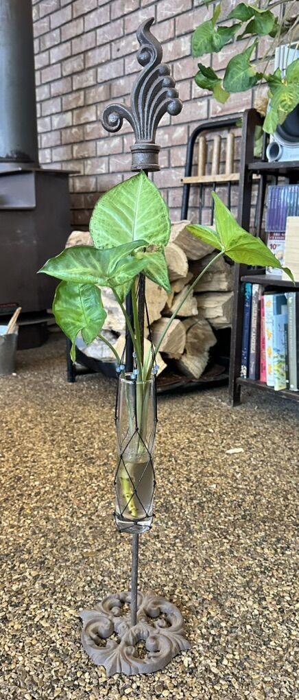 VenmoThis beautiful, living, Hydroponic plant is hanging from a 30” iron base. The hanging vase holds the hydroponic plant that can spend its entire life in the water. Bright, indirect light and keep water in the vase—the only thing you need to do to be a plant mom or dad to this cutie. Spice up a dull corner or add character and color to your mantel. And don’t forget that plants make your indoor air cleaner!