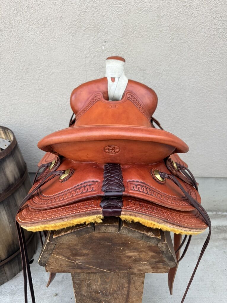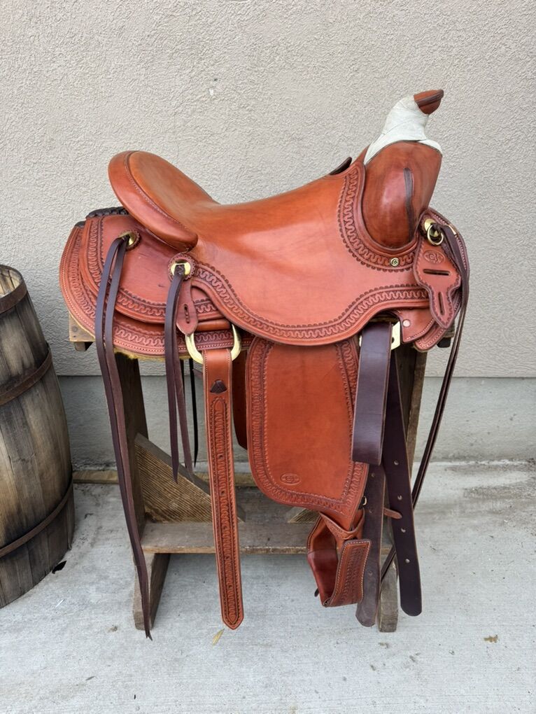 GooglePayMake me an offer. Selling a 16” CJ Bean Saddlery ranch roper/all around saddle. Custom built on an Olin Young rawhide covered hardwood tree. Has a 6.5” gullet with standard quarter horse bars. Includes a matching breast collar and rear cinch. Comes with a 10 day trial period.