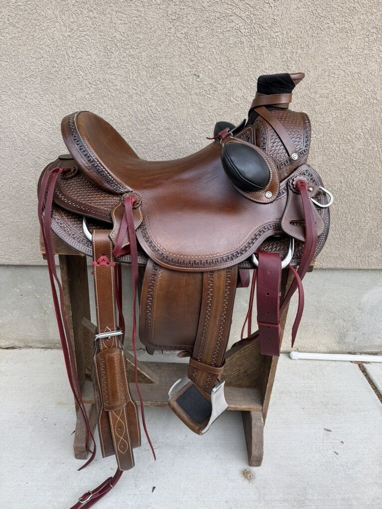 GooglePayBrand new JC Martin Wade saddle on a rawhide covered wood tree. Has a 7” gullet with FQHB. Includes matching breast collar and rear cinch. Comes with a Free 10 day trial period.