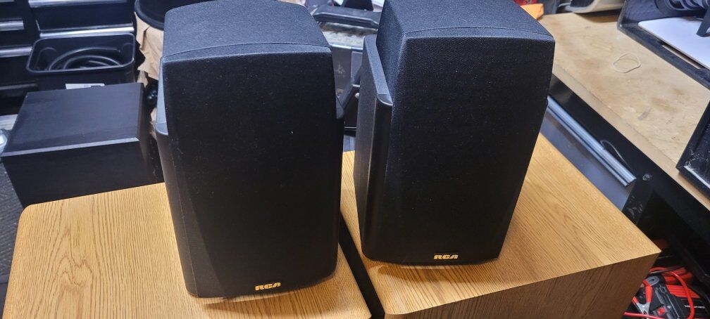 Rca speaker set. these were available when radio shack was around and had the Optimus line available. These have the nice Kevlar type woofer with the sought after ribbon tweeter. these tweeters are used in today's higher end designs . they have a full 360 sound and fill a room with clarity. asking 50 on this set.