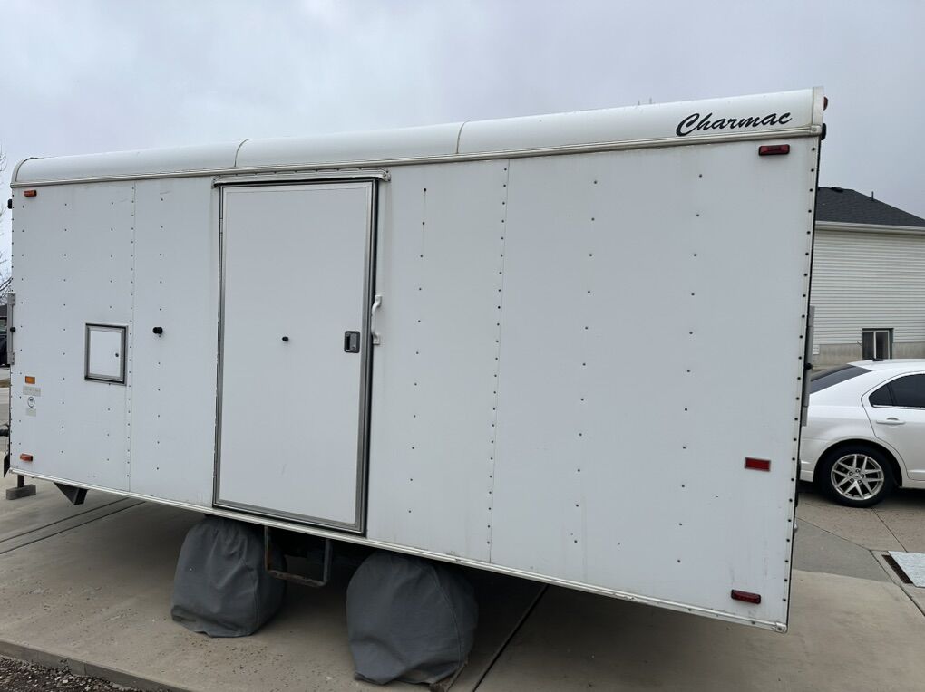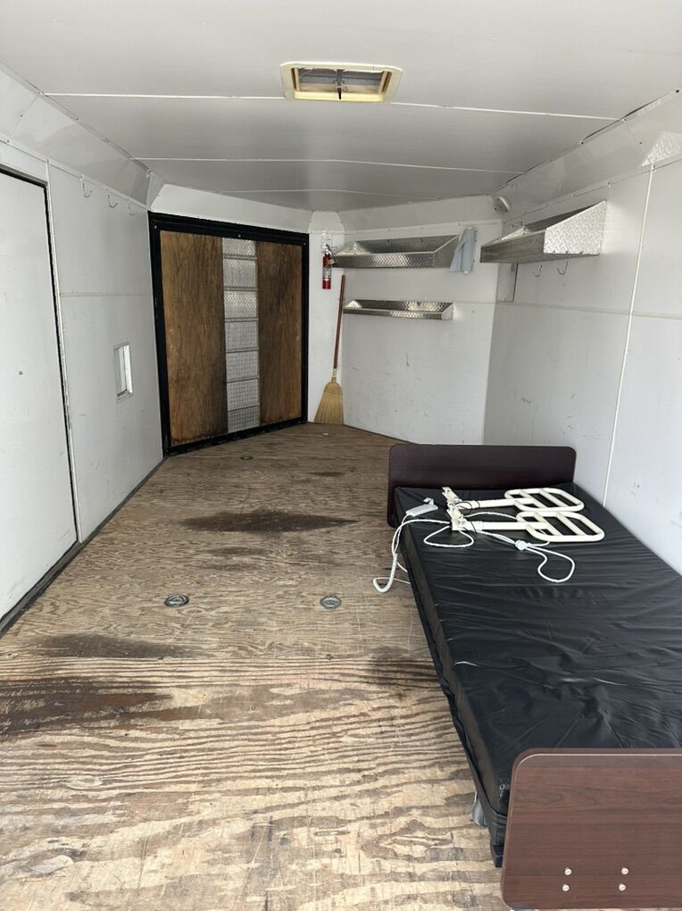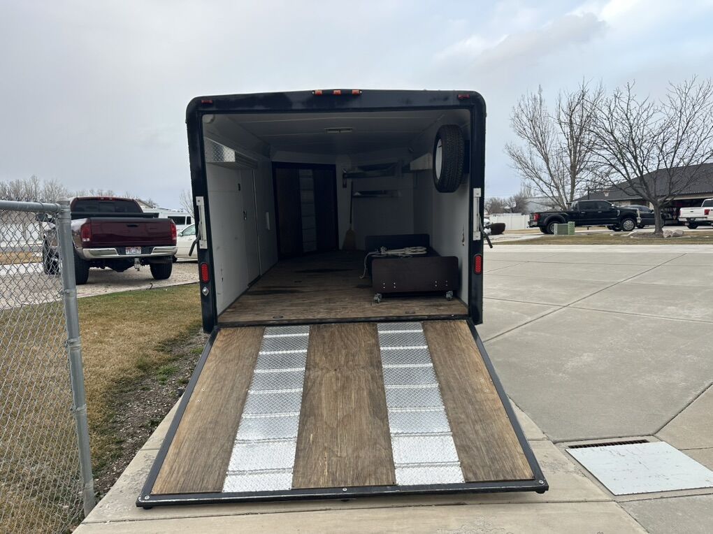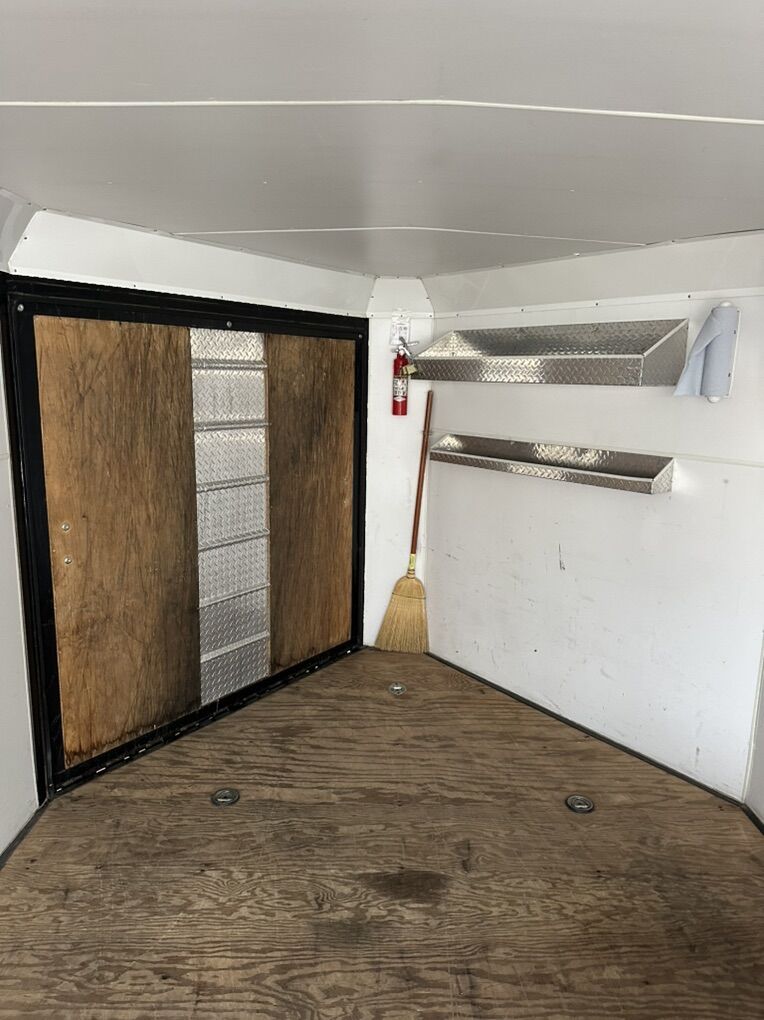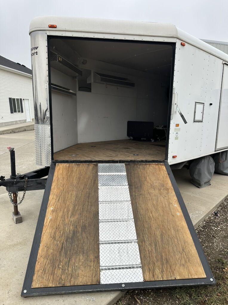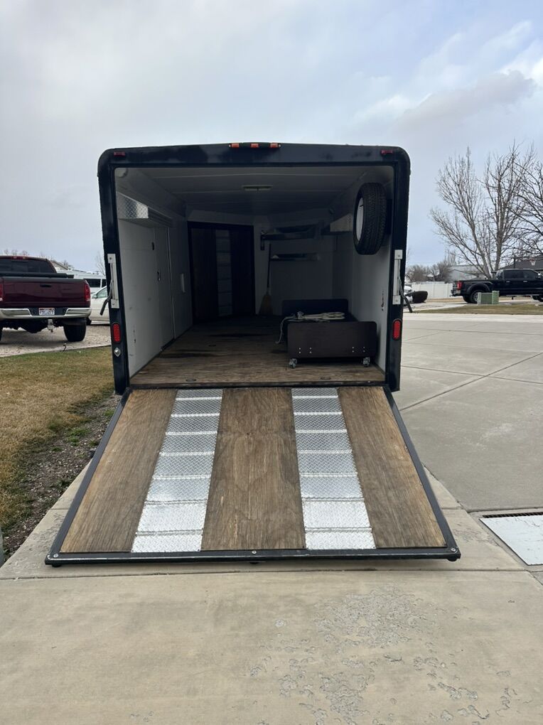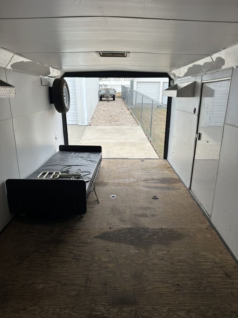Size : Back door. 92” wide 73” high Interior 78.5” tall 99” wide 14 ft 8 inches long to the square 19.5 to the nose 22.5 feet over all to tongue Excellent condition. Well taken care of tires are in good shape . Text or call with any questions.