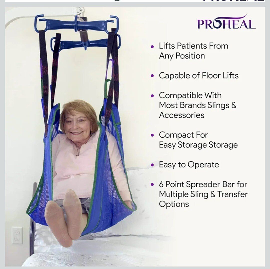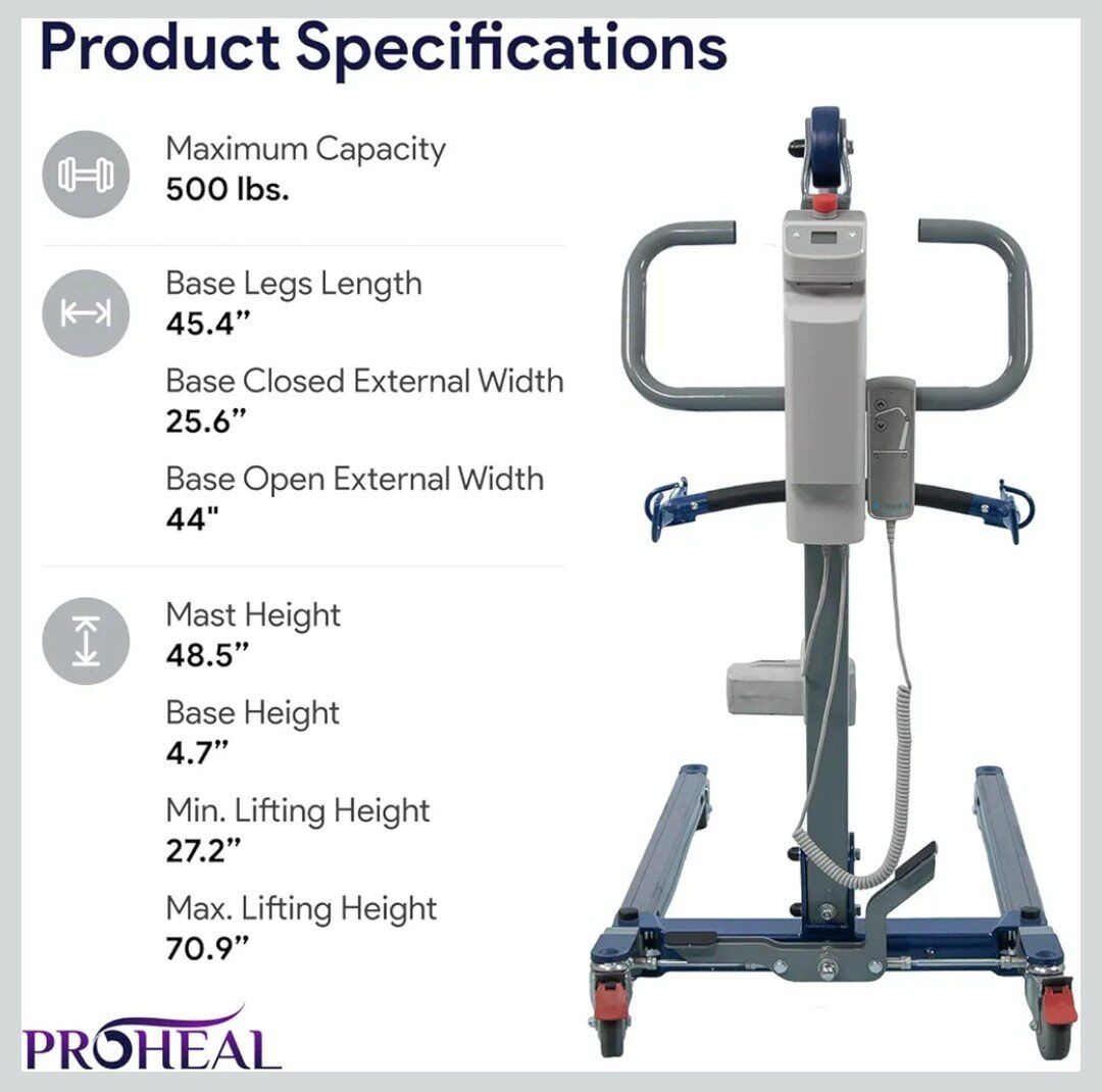 ProHeal Electric Lift - Safe and Easy Full Body Patient Transfer Lifter for Home Use and Facilities - Floor, Low Bed and Chair Lifting, 500 Pound Weight Capacity, 6 Point Spreader Bar