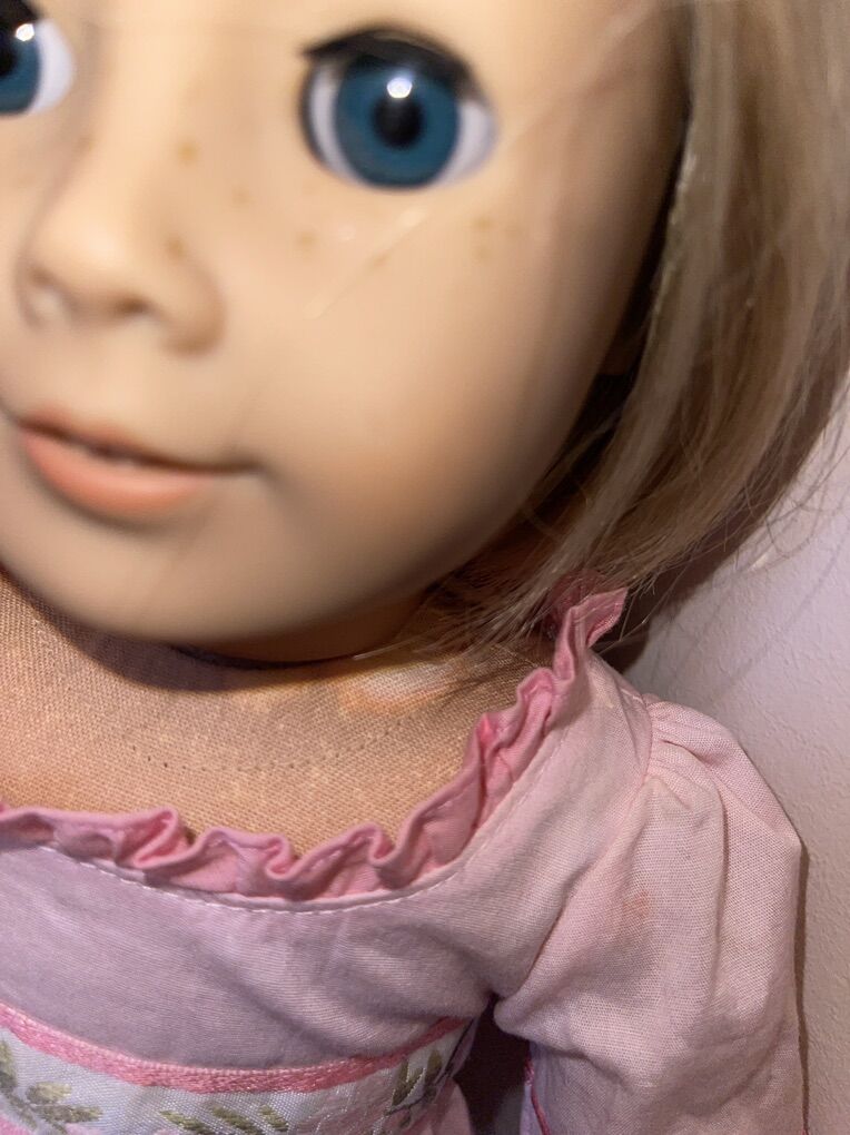 PayPalI have this Kit American Girl doll. She has some marker and spots on her neck, body and legs (see pictures). She comes in a Caroline Abbott meet dress.
