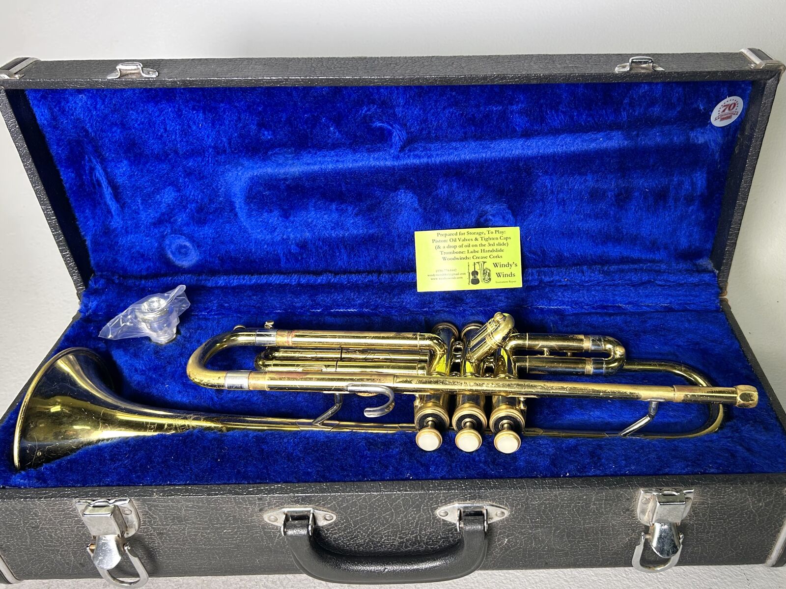 Great option for a beginner, student band player, or anyone wanting a solid vintage trumpet. Plays well and can be used right away.