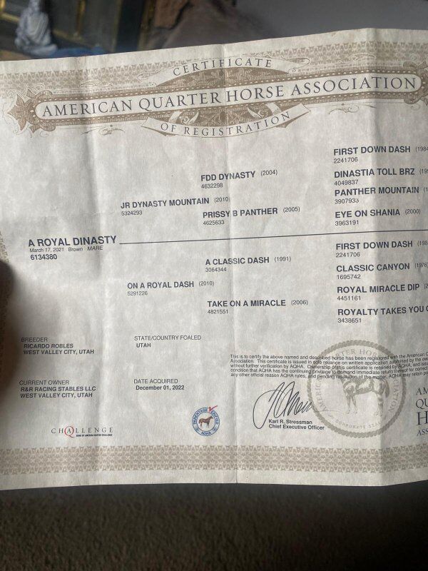I got this 5 year old race mare she's out in pasture now located in West Valley City Utah 3852673301 $8500 obo