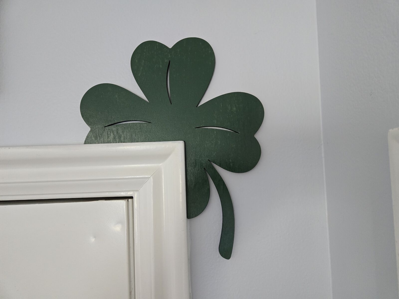 No need for any kind of installation, they just sit on the corner, so you can move them around to different doors very easily. Great for St. Patrick’s day décor.
