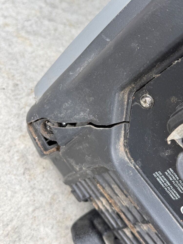 MISSING COVER TO GET INTO OIL. CRACK ON FRONT OF PLASTIC