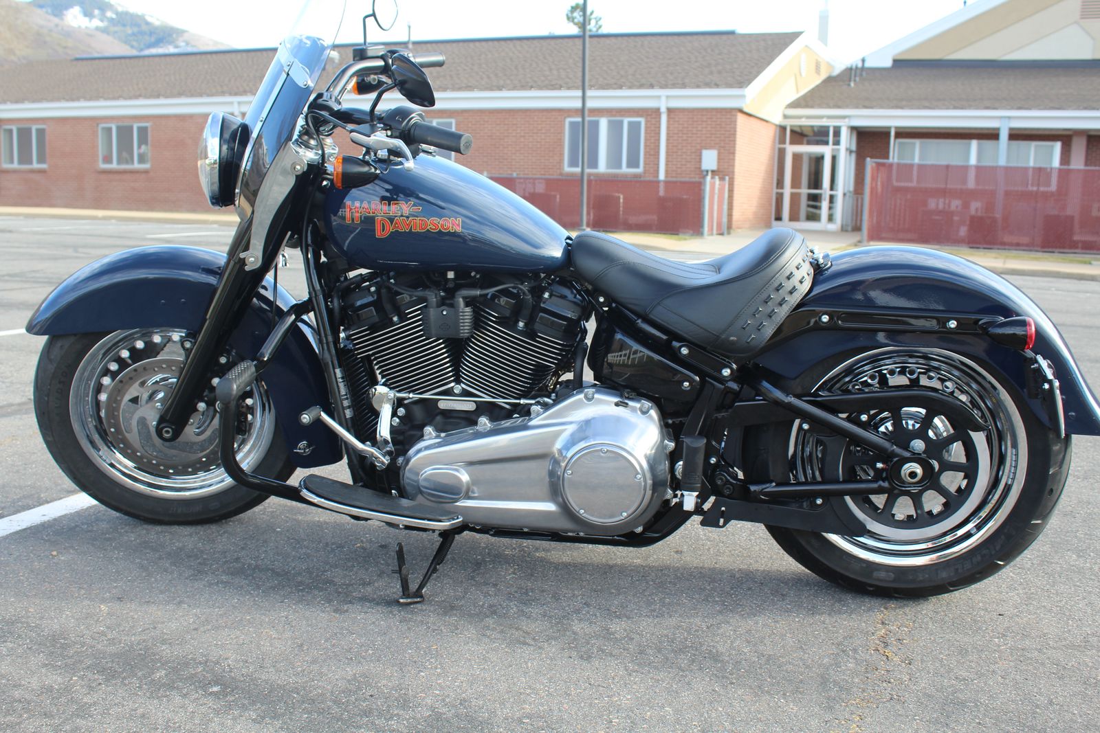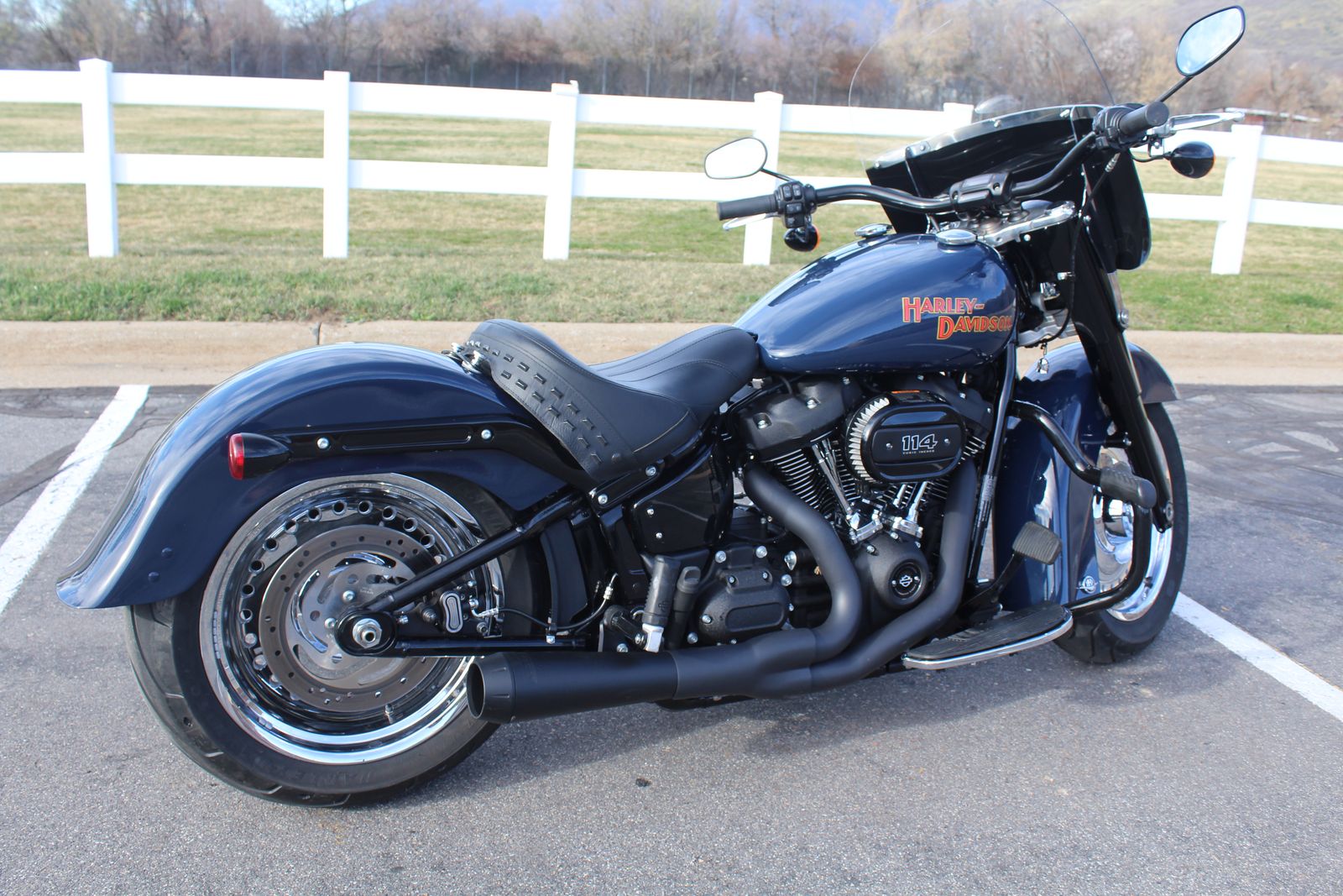 VenmoSomewhat customized soft tail, new NOS fat boy Wheels, 200mm 6 inch wide rear, 140mm 3.5 wide front, new Michelin tires, lowered, 1200 miles, 114 engine, Harley cruise control. Billiard blue Harley color. Paint does not have any road rash. Starts and runs perfect. Has new Bassani exhaust. Call Troy 801-678-6124