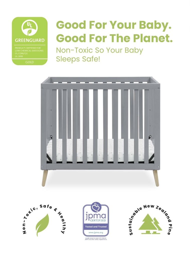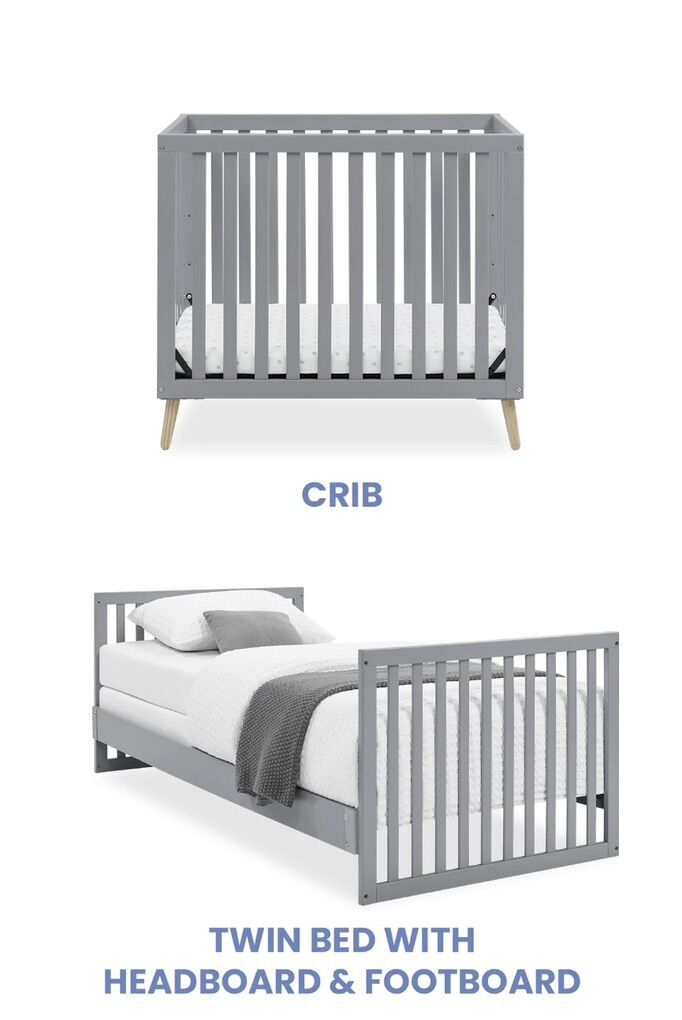 ApplePayTHE SAFEST OPTION FOR YOUR BABY: This crib is JPMA certified to meet or exceed all safety standards set by the CPSC & ASTM; We know chemicals have no place in your nursery, so we use a non-toxic, baby-safe painting process that is lead and phthalate safe • COMFY MATTRESS INCLUDED: This Mini Crib includes a 2.75-inch thick mini crib mattress that is extremely comfortable and water-resistant; Mattress uses 24 x 38 size sheets 2-IN-1 CONVERTIBLE CRIB: Mini crib converts to a twin bed with headboard and footboard, or twin bed with headboard only (conversion rails sold separately); Use Metal Bed Frame #0040 for headboard only or Twin Size Wood Bed Rails #W0090 for headboard & footboard • POPULAR COLORS: Available in Bianca White with Natural or Grey with Natural • ADJUSTABLE HEIGHT: Adjustable height mattress support with 2 convenient positions to grow with your baby • COORDINATING ITEMS: Pair this mini crib with any Delta Children Dresser to complete your nursery; When converting to a twin bed, pair it with a Delta Children Twin Mattress (sold separately) • QUALITY MATERIAL: Made of sustainable New Zealand pine and poplar wood; Tested for lead and other toxic elements to meet or exceed government and ASTM safety standards • SIZE: Assembled Mini Crib dimensions: 40W × 25.75D × 34.75H