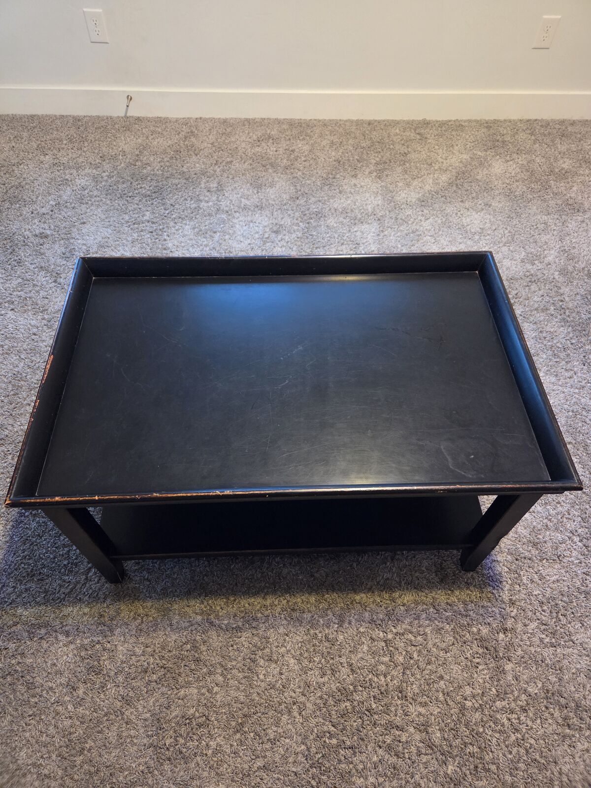 VenmoBlack Stand Coffe Table 38 Length 21 1/2 tall 2ft wide.