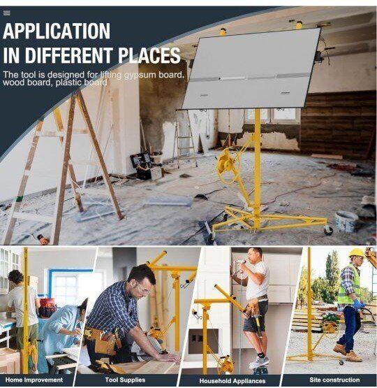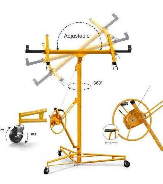 35 per week rental 11 ft Drywall Lift,Drywall Rolling Lifter Panel,150 LBS Heavy Duty Sheetrock Lift Drywall Lifter,Drywall Lift Panel Hoist Jack with 360° Adjustable Telescopic Arm & 3 Lockable Wheels Amazon's Choice