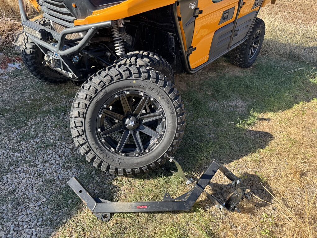 Comes with.. Battery tender/trickle charger Tusk cover Full size spare wheel/tire Tusk hitch mount spare tire carrier