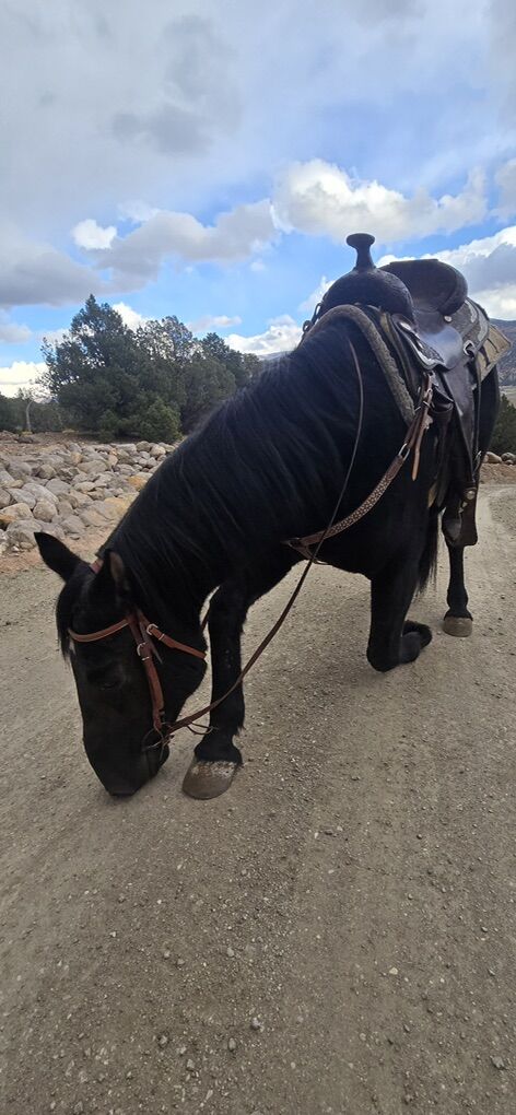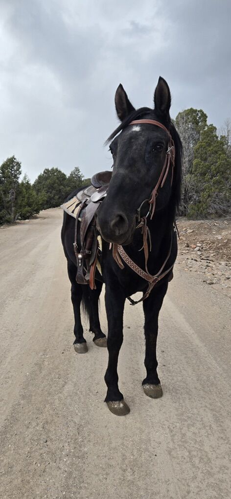 CashAppJazz is a 10-year-old black Mustang mare with a sweet personality and a lot of heart. She is best suited for an intermediate rider and has been a fun, willing partner with a good mind.