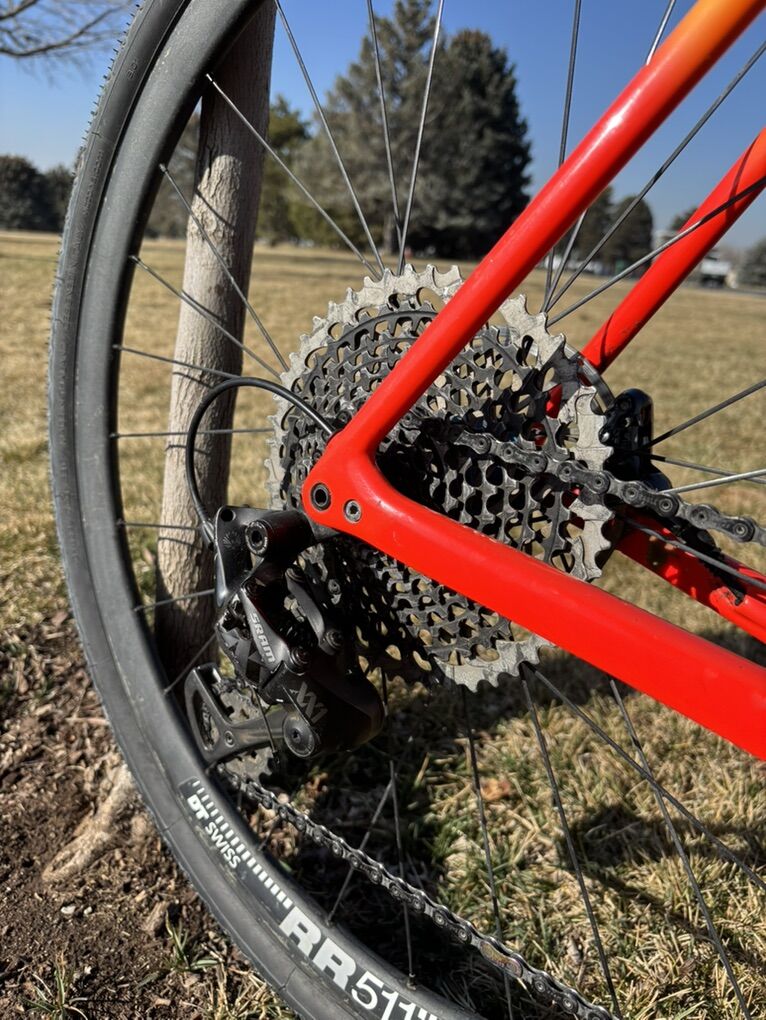 Spec: SRAM XX1 Der w/ Ratio Drop Bar Conversion kit SRAM Rival Brakes/Levers with Ratio Conversion Kit SRAM X01 Cassette 10-50 Brooks C17 Saddle DT Swiss RR511db wheelset Bitex Hubs w/ Sapir CX-Ray Bladed Spokes Thompson Seatpost Wolf Tooth 44t Chainring Zipp Handlebars Vittoria Terreno Dry 700x38c Tires
