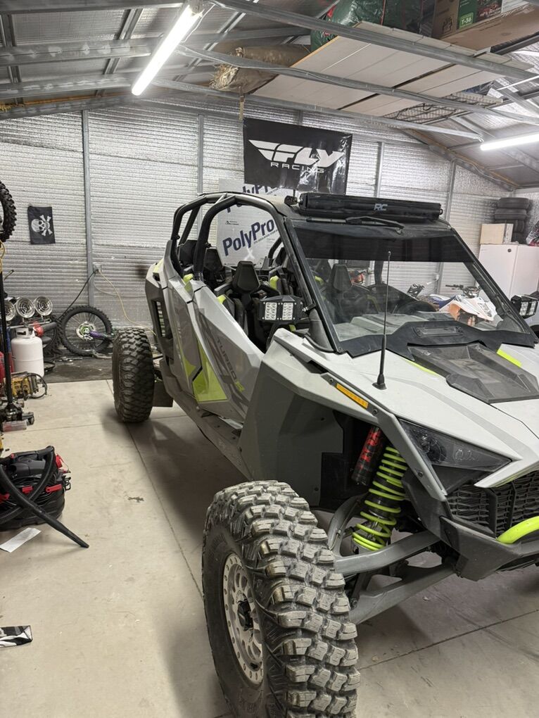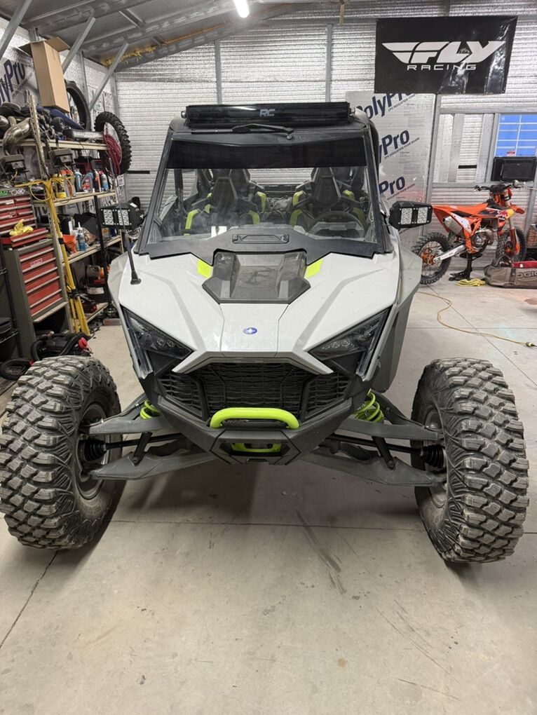 Selling my 2022 rzr due to not ever using it. Bought at the end of 2023 brand new. It’s clutched for the 35” tires that are on it. 1600 miles. It’s got a charge tube as well as a blow off valve. I’ve enclosed that back of the bed for more storage. It’s got mirror lights as well as a rough country curved light bar. The tires have exactly 200 miles on them, same with the wheels. It’s also got the fancy fox shocks (dynamix). Ride command that you just can’t beat, it’s super cool. Super clean machine that I hate to see go but I just can’t watch it sit any longer. 29000 obo thanks for looking