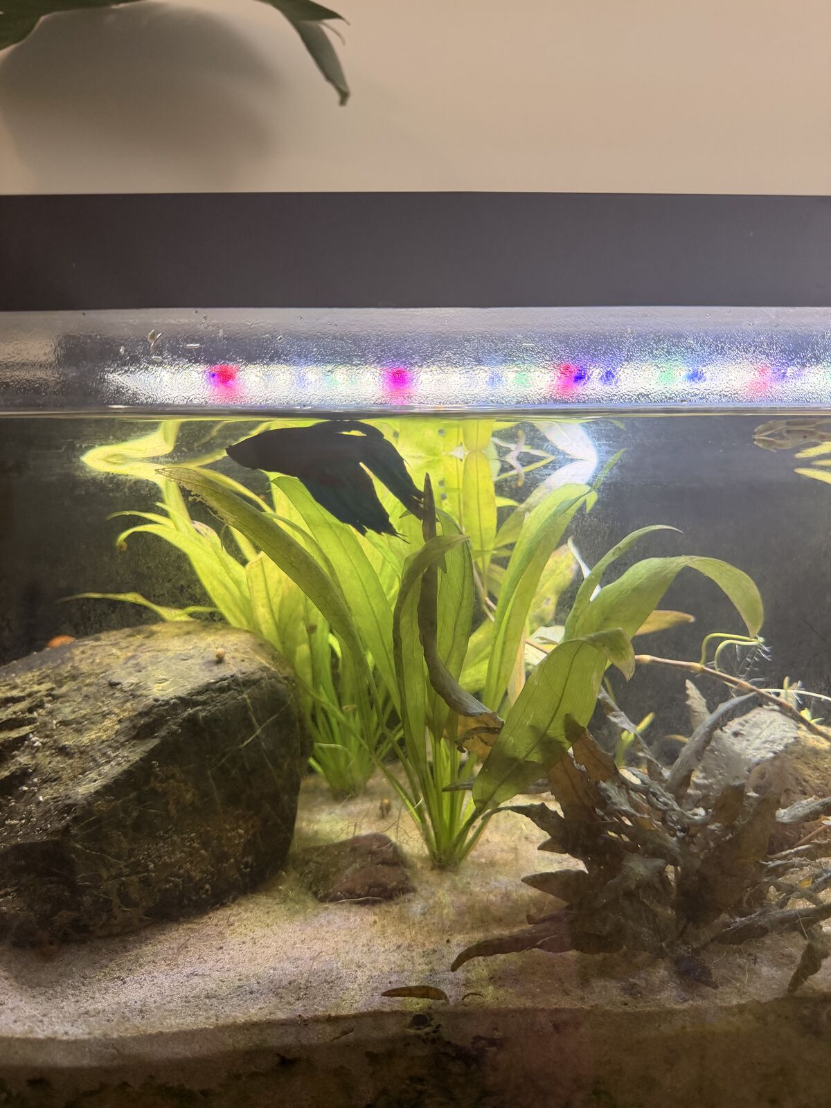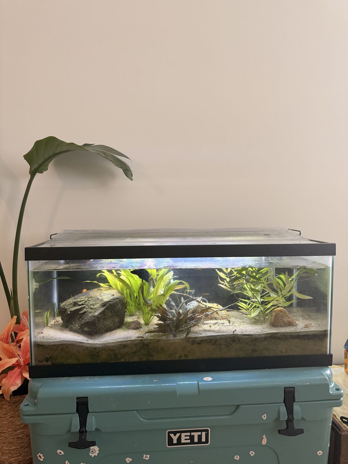 VenmoPlanted, comes with light and filter, food, cleaning supplies, etc. Currently holding a betta and 6 or 7 Endlers guppies, and one Cloud Minnow. There is a big snail in there, not sure the type. Tank is in good condition. Bought it for my daughter when she won the betta fish as a prize, just not really wanting to keep up with it.