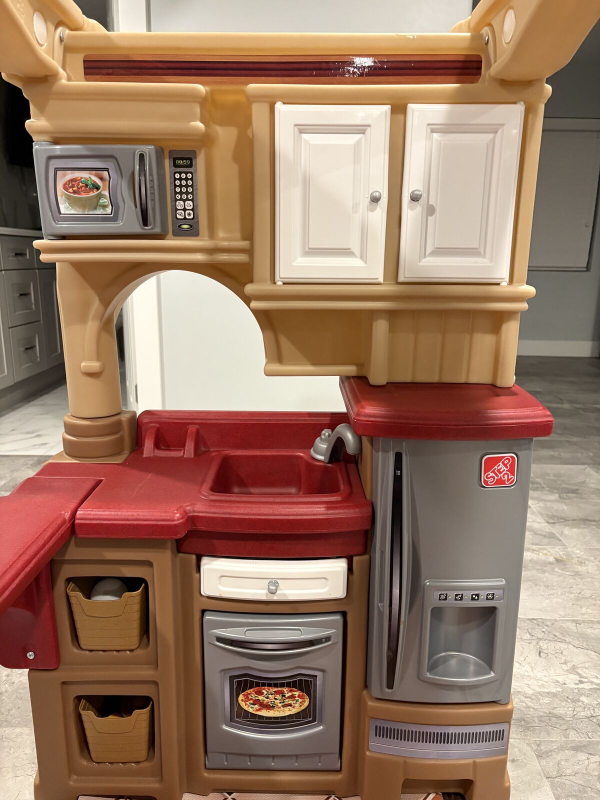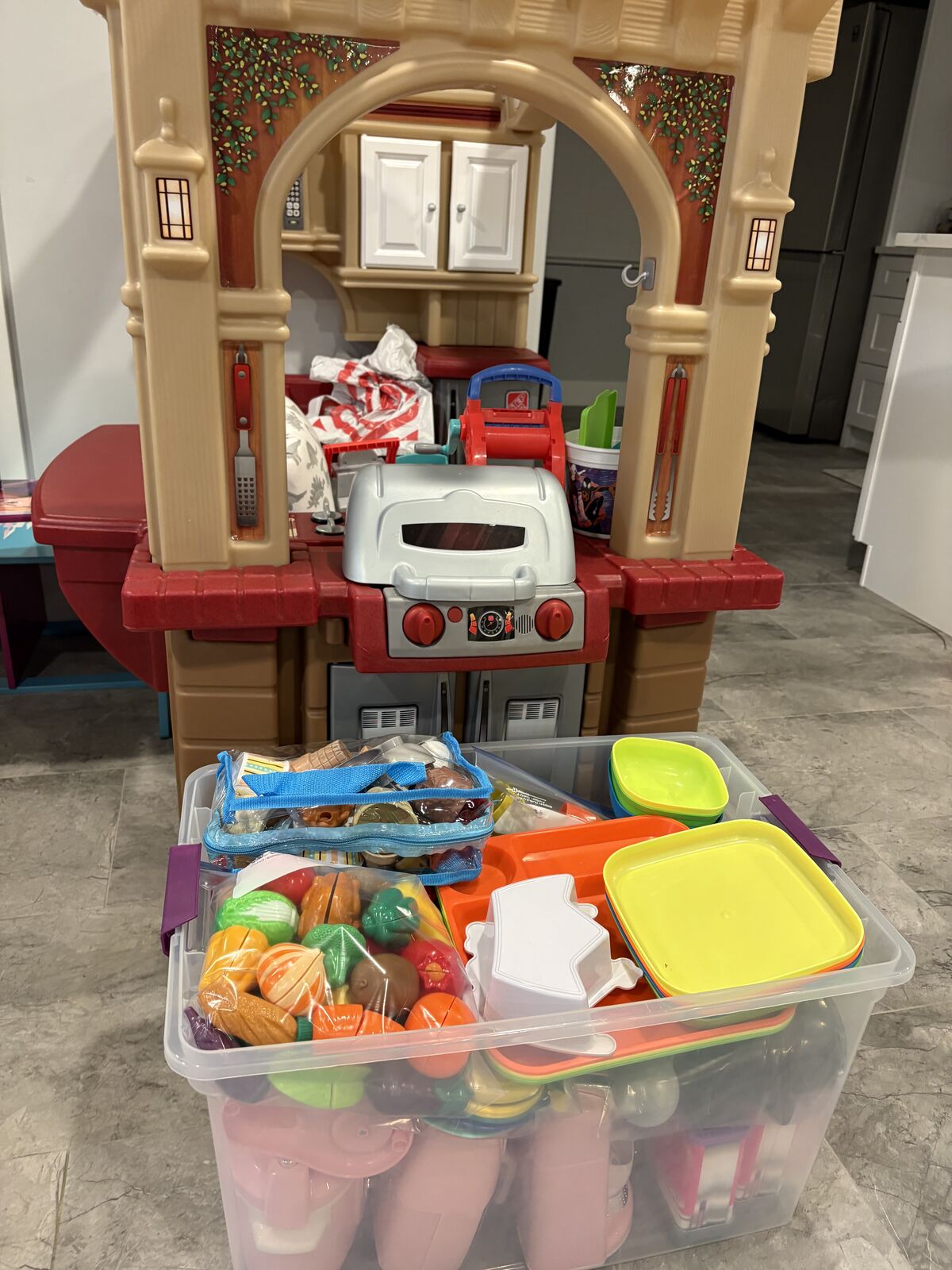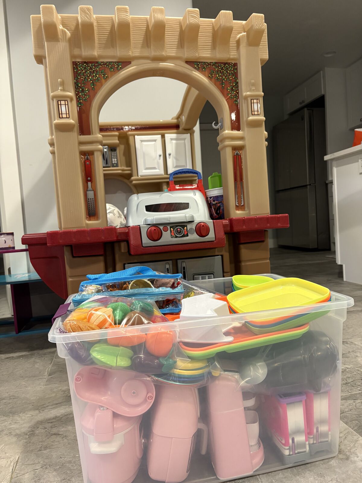 VenmoGrand pretend play kitchen with additional pots, pans, plate, etc.