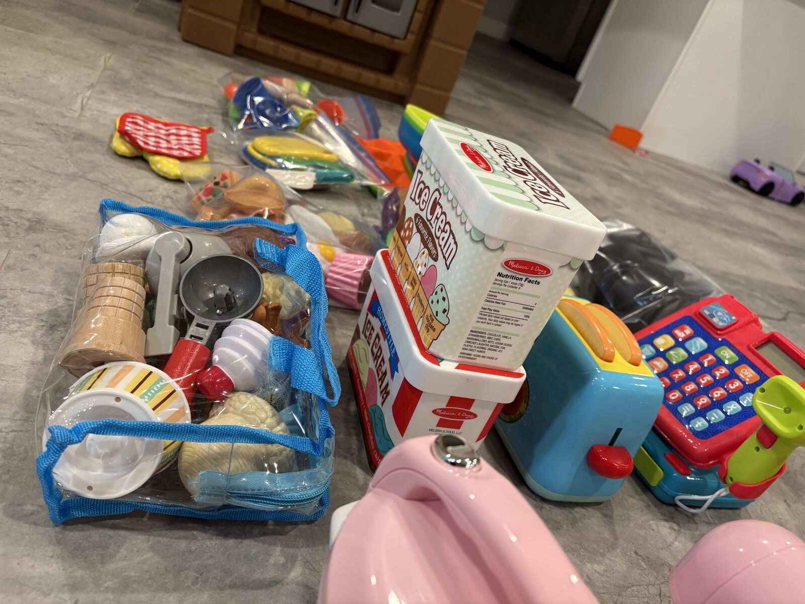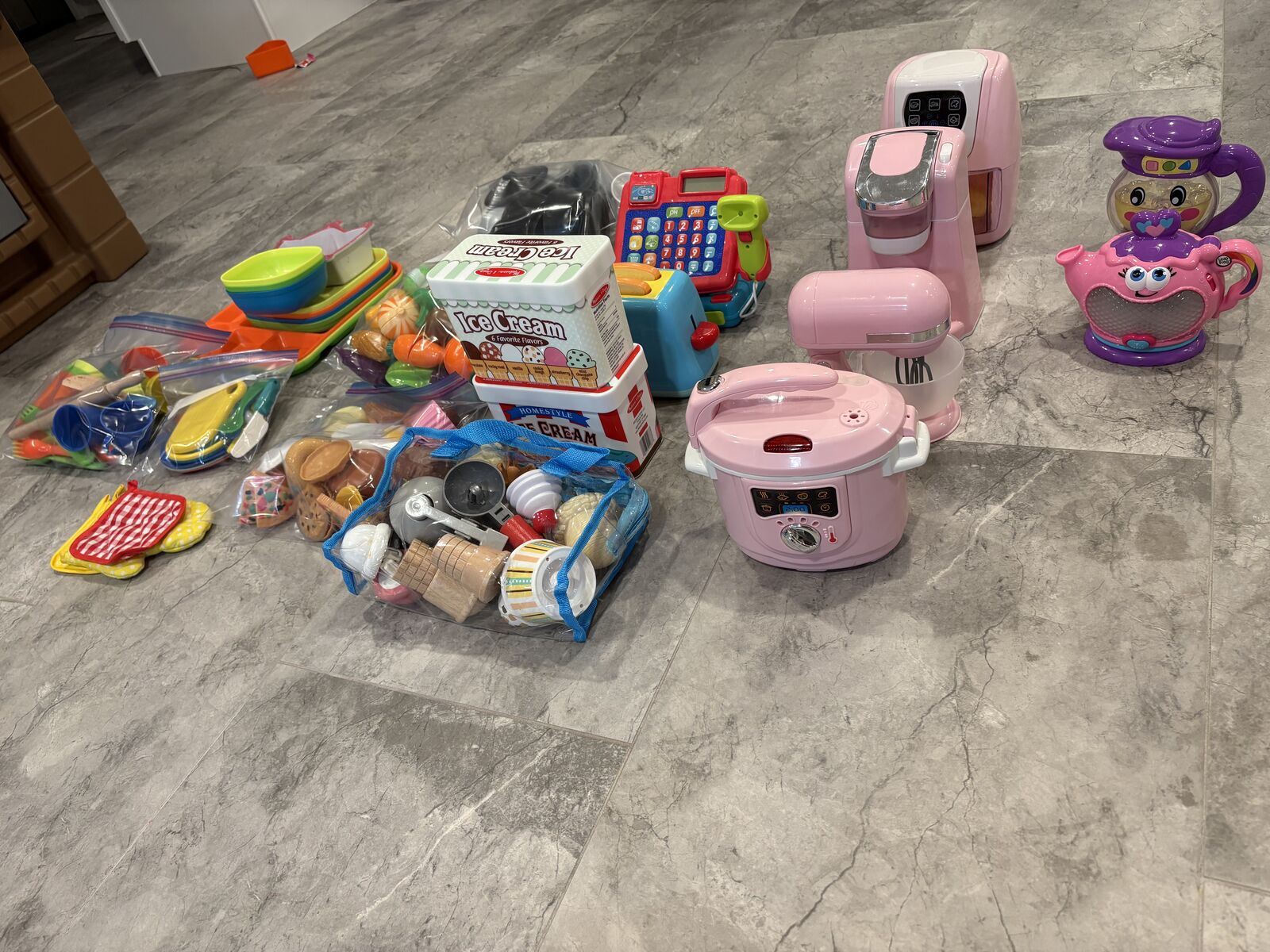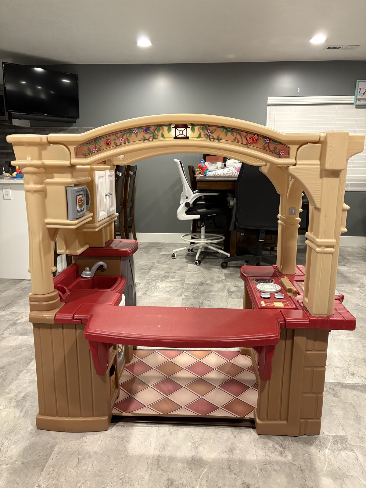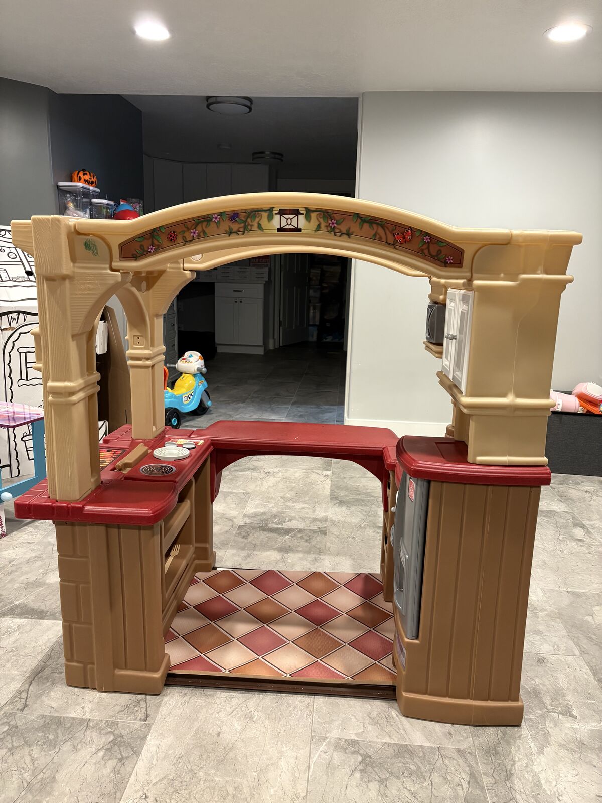 VenmoGrand pretend play kitchen with additional pots, pans, plate, etc.