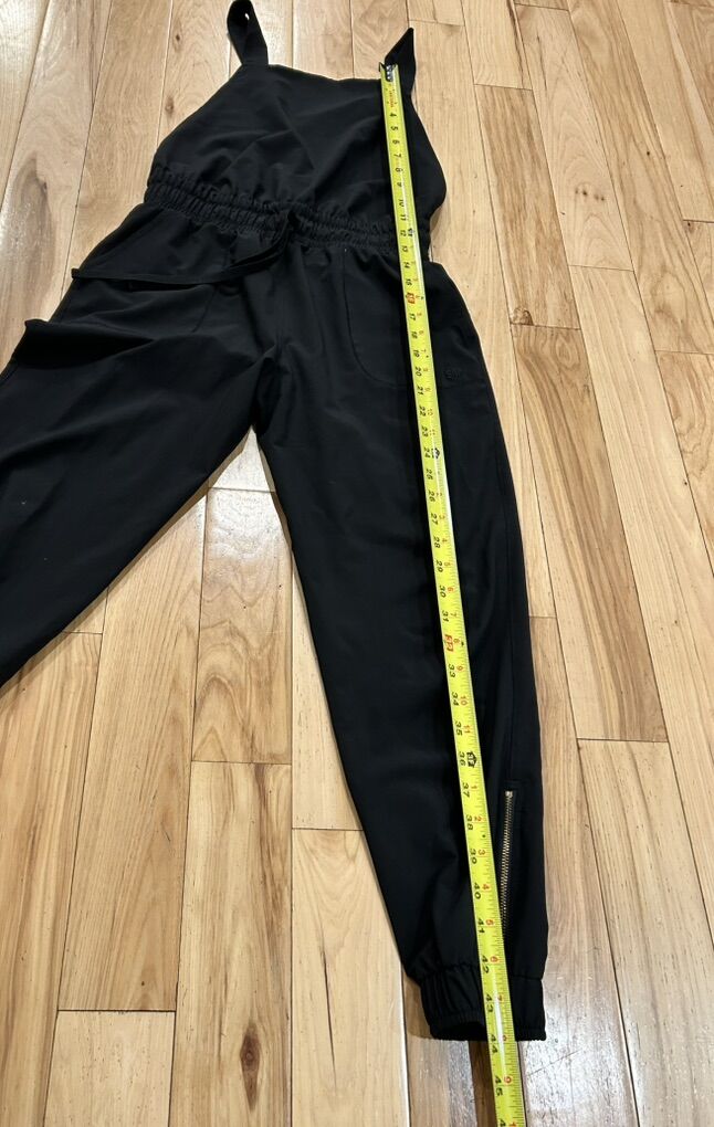 Albion Black Pants Jumpsuit with Adjustable Straps and Gold Ankle Zippers - Women’s Size XS - with squared neckline, pockets and elastic waistband with waist tie - great condition - pre-owned.