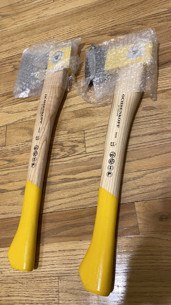 Two available. 1250g. 4in blade. Ash handle. $60 for one, $120 for both. These are high-quality hatchets--firm on price