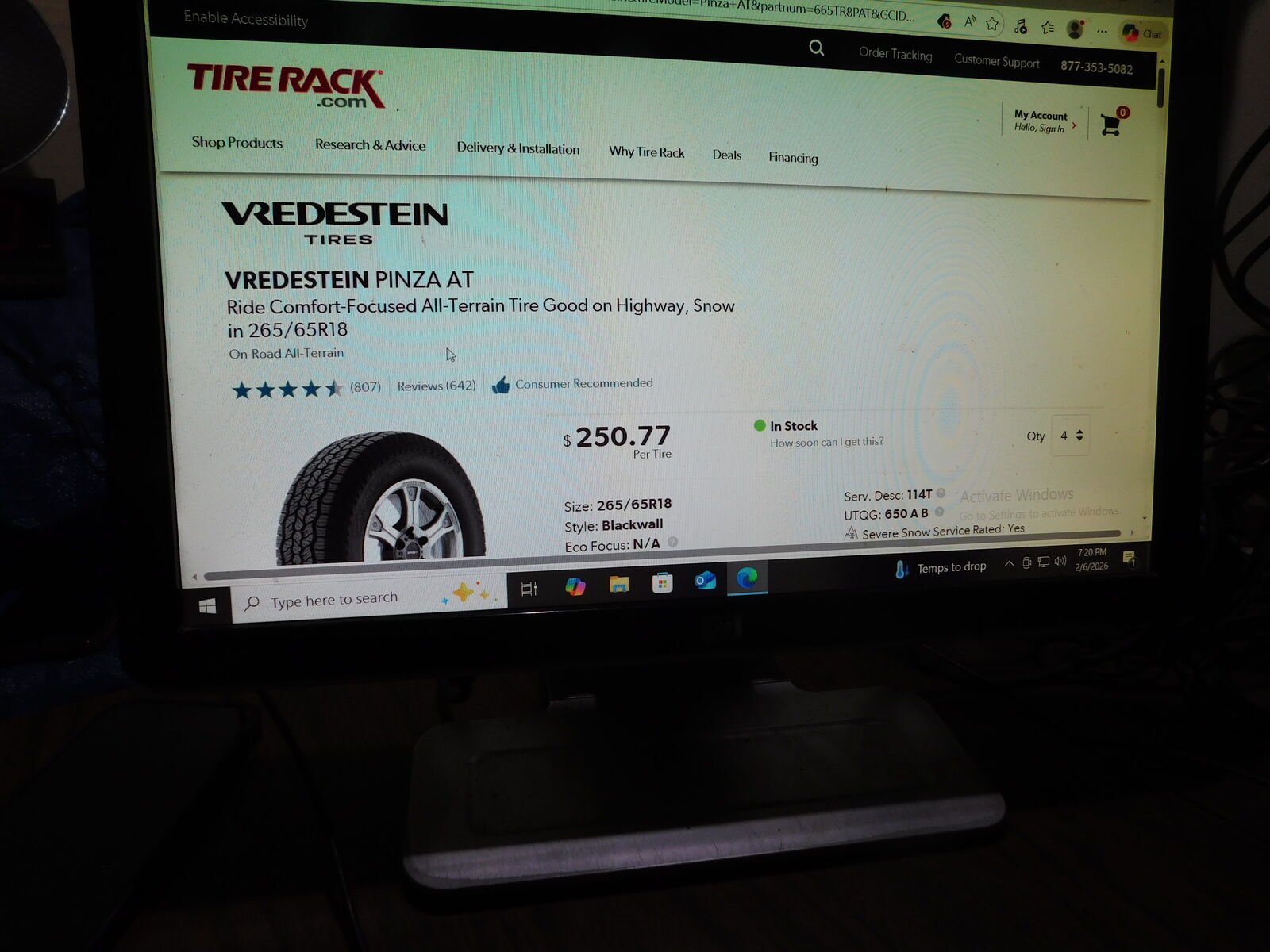 Set of 3 265 65R 18 Vredestein 114T like new $150 for set of 3 $50 per tire Tire Rack $250 per tire 3 for less than price of 1 must see