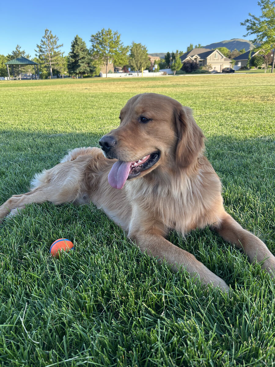 Benny is a 3 year old Pure Bred AKC Registered Golden Retriever. He is the most patient and loving dog you will ever meet. He loves kids, playing fetch, and playing in any body of water. He is loyal and very obedient. He enjoys being outside and makes a great adventure buddy.