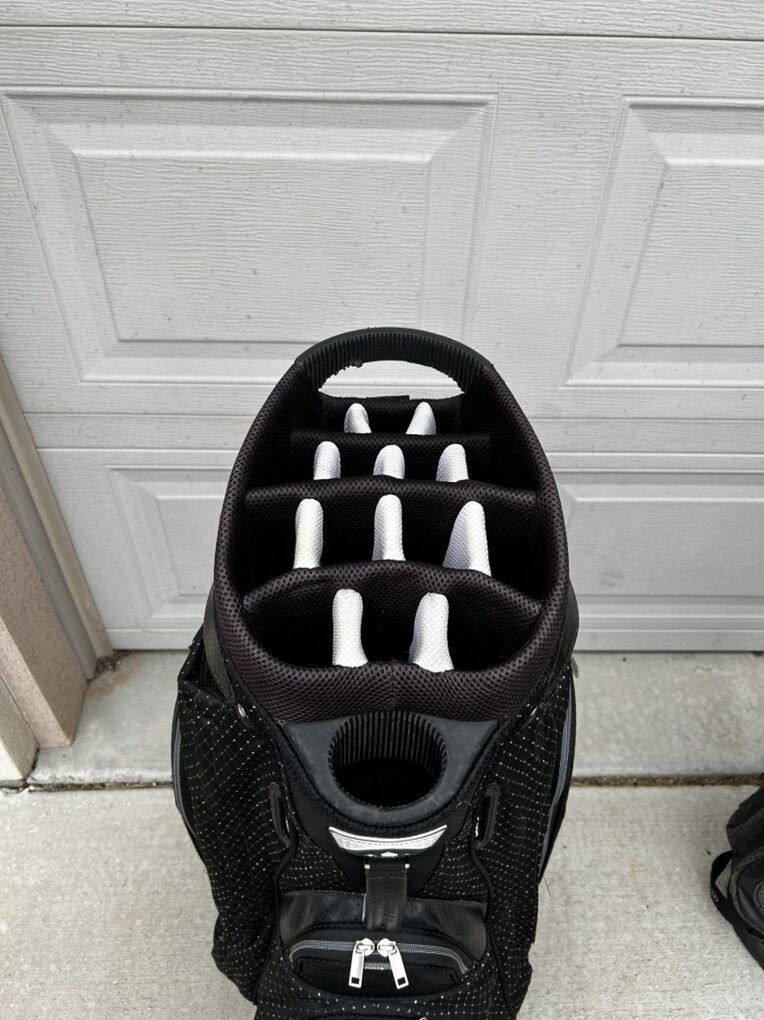 If you’ve ever owned a Sun Mountain golf bag, you know the quality speaks for itself. This black women’s cart bag features a nice looking diamond-stitched design that adds just the right amount of bling while keeping a classy look.