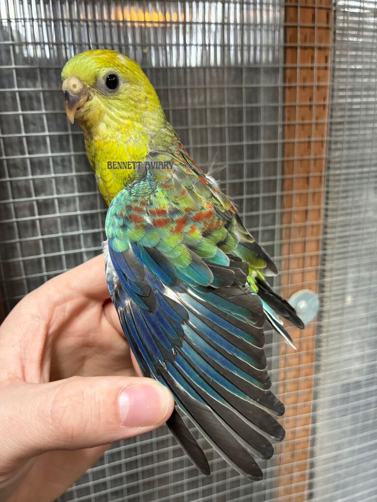 I have baby Redrump parakeets available. They hatched January 6 which makes them 6 weeks old. They are parent raised but haven’t learned their parents wild behavior yet. They are now available for hand feeding and training. Redrump’s are extremely easy to hand feed and tame down. They are pretty docile parrots with lots of personality. Unlike Budgies, Redrump’s don’t make loud screeching sounds, they make a very pleasant singing noise. These would make the perfect companion. The last photo was taken the day they hatched. Two males and two females. $150 each.